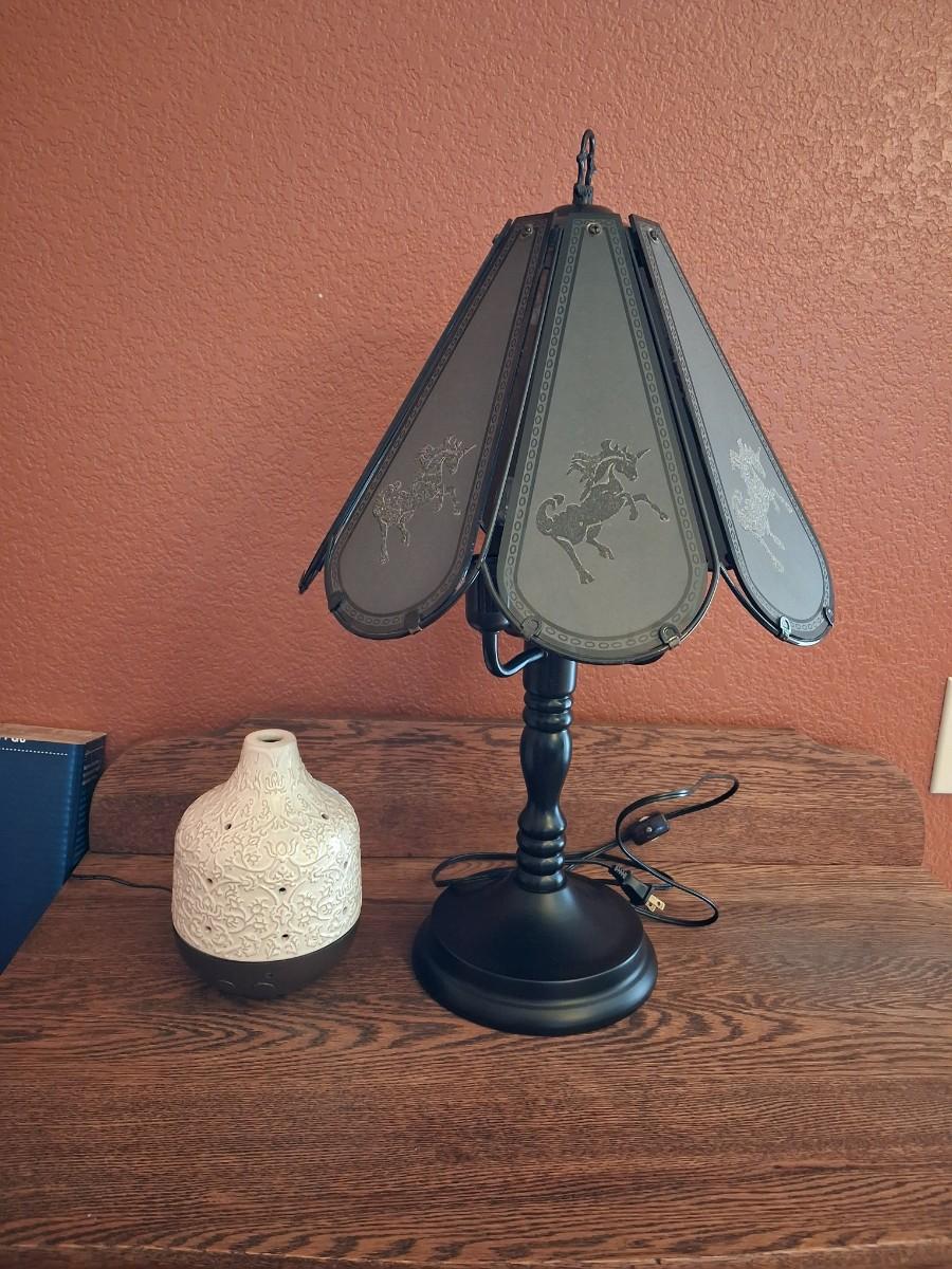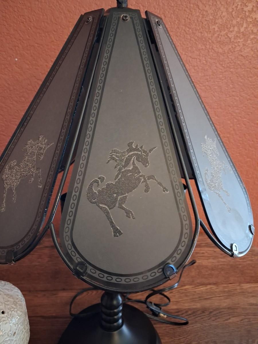 SMALLER LAMP WITH UNICORNS ON GLASS PANELS AND A AROMA DIFFUSER