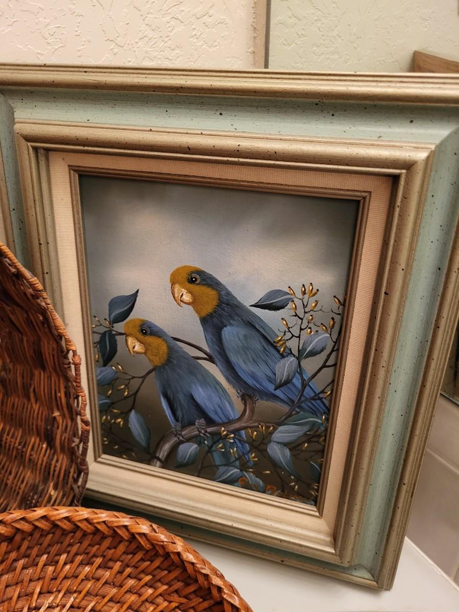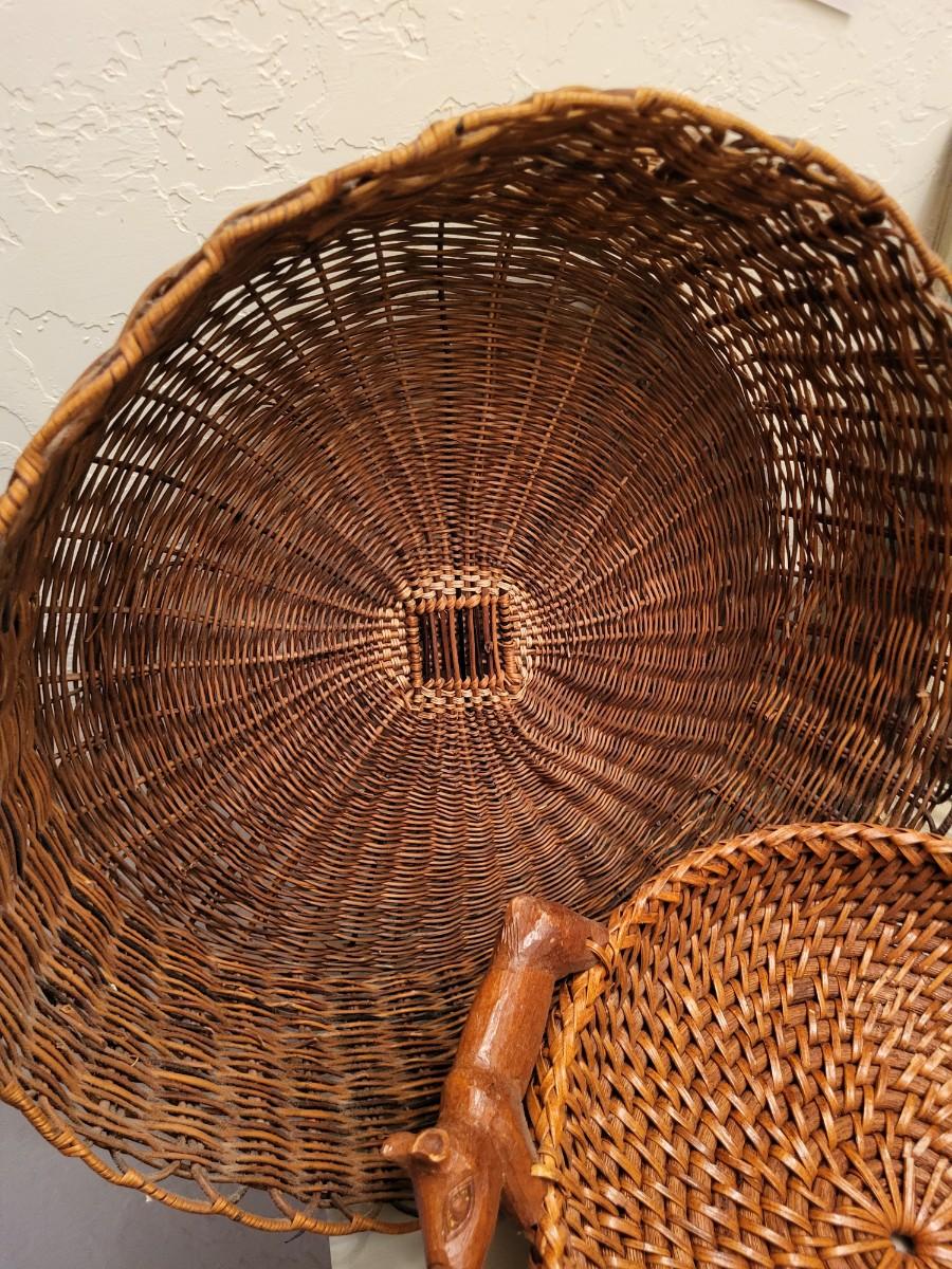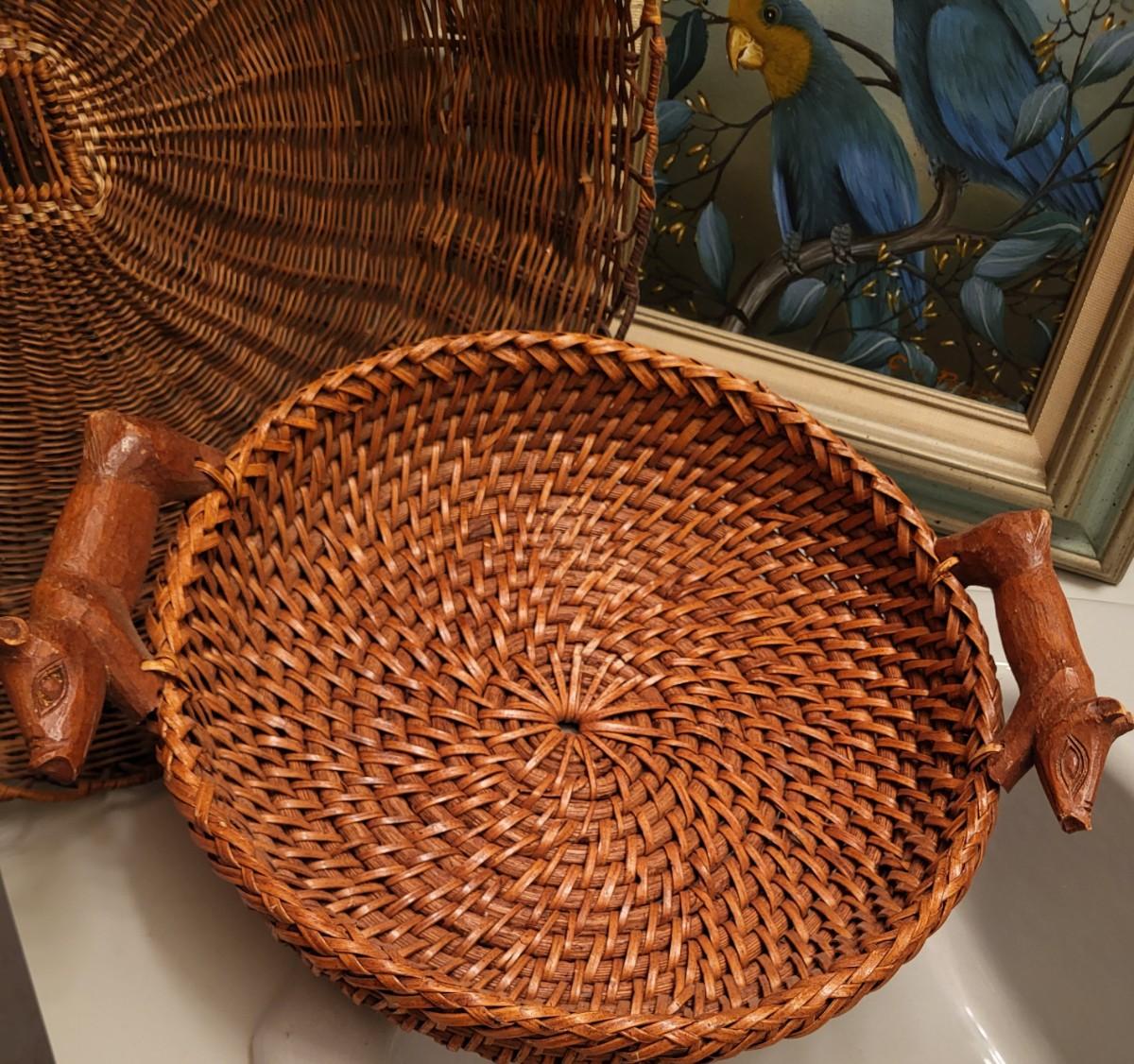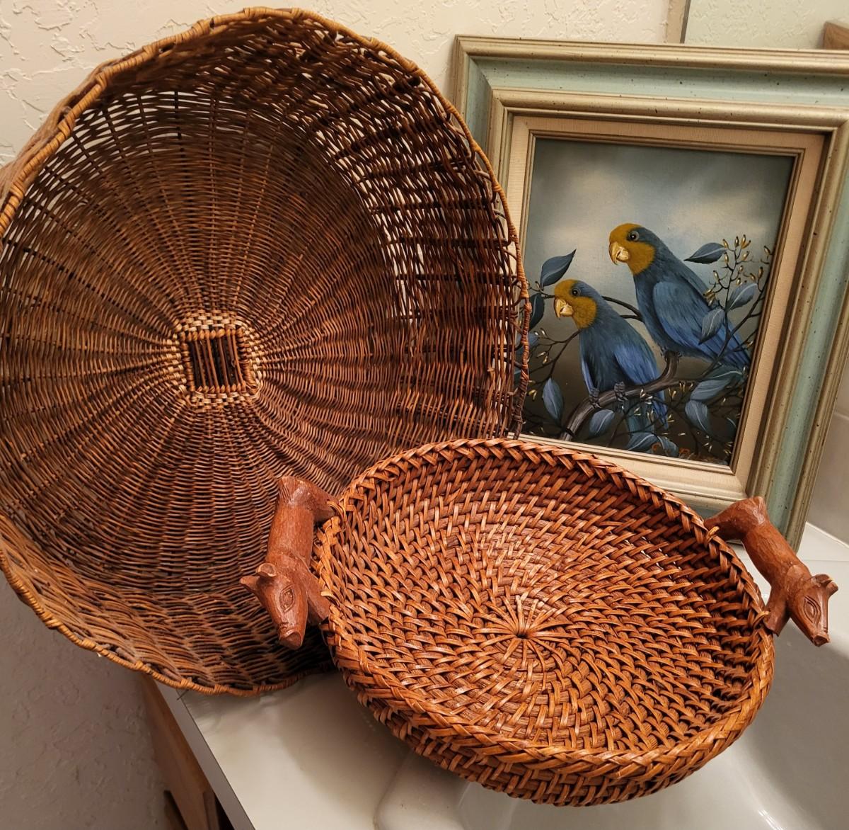 SMALLER OIL PAINTING AND 2 BASKETS