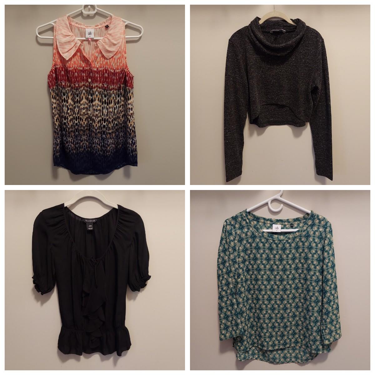 Lot includes 10+ tops by brands Cabi and White House Black Market in sizes small and medium. Some tops are new with tags. Please see photos for details. Shipping available