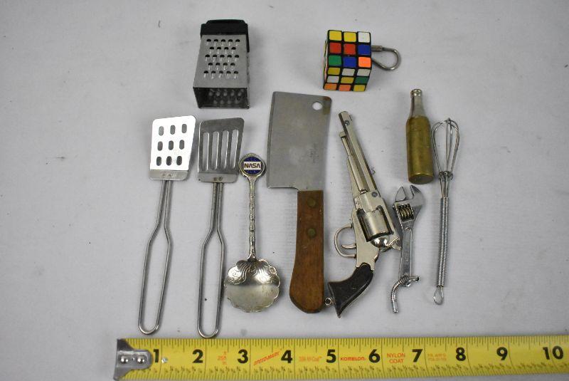 Smalls Lot - Victory Pistol, NASA Spoon, Revere Grater, Rubik's Cube Keychain, Bottle Lighter & More!