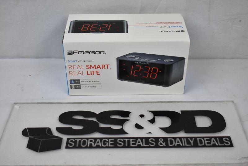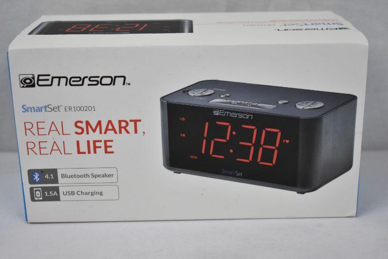 Emerson SmartSet Alarm Clock Radio with Bluetooth Speaker, USB Charger for iPhone and Android and Red LED Display ER1002, $36 Retail - New