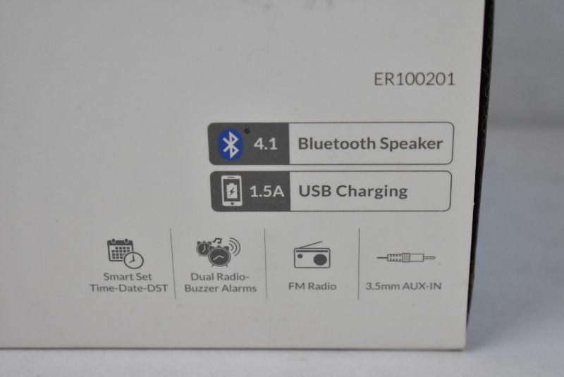 SmartSet Alarm Clock Radio, Bluetooth Speaker, USB Charger, $36 Retail - New