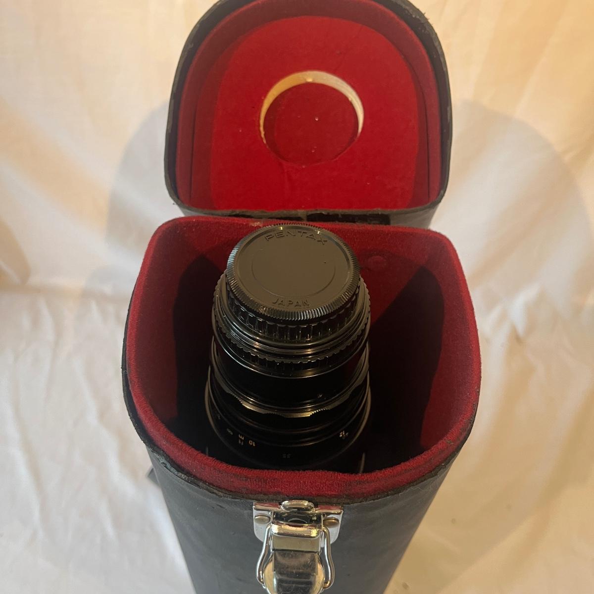 Lot includes a SMC Pentax 1:4.5 500 mm lens, lens has Asahi and the number 7378221 on it. Lens measures 5”D x 18”long. Also includes case.
