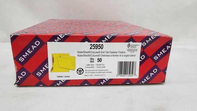 Smead, SMD25950, WaterShed CutLess End Tab Fastener Folders 50/Box, Yellow - New