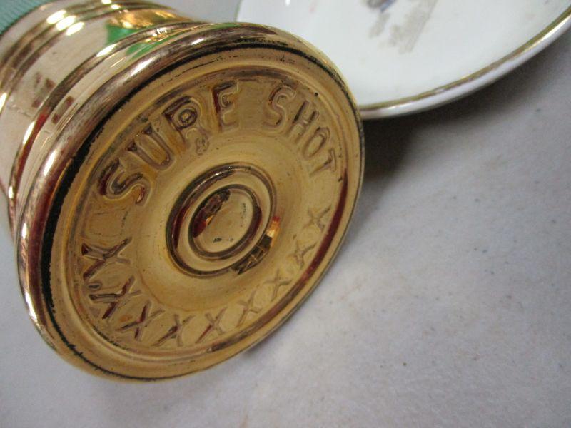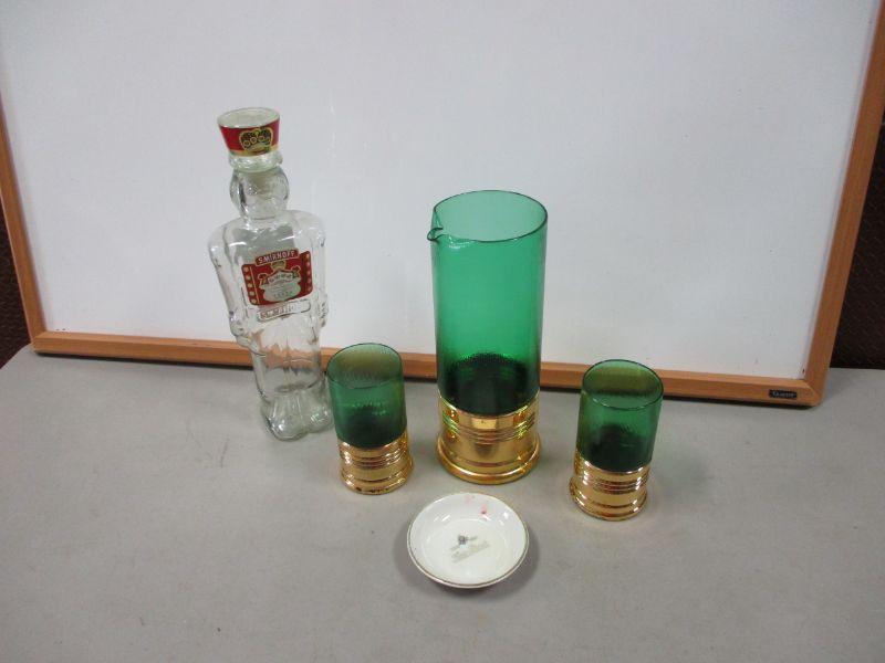 Lot 27 - Smirnoff Vodka Toy Soldier Nutcracker Glass Bottle & Imperial Glass "Sure Shot" Green Shotgun Shell Tumblers