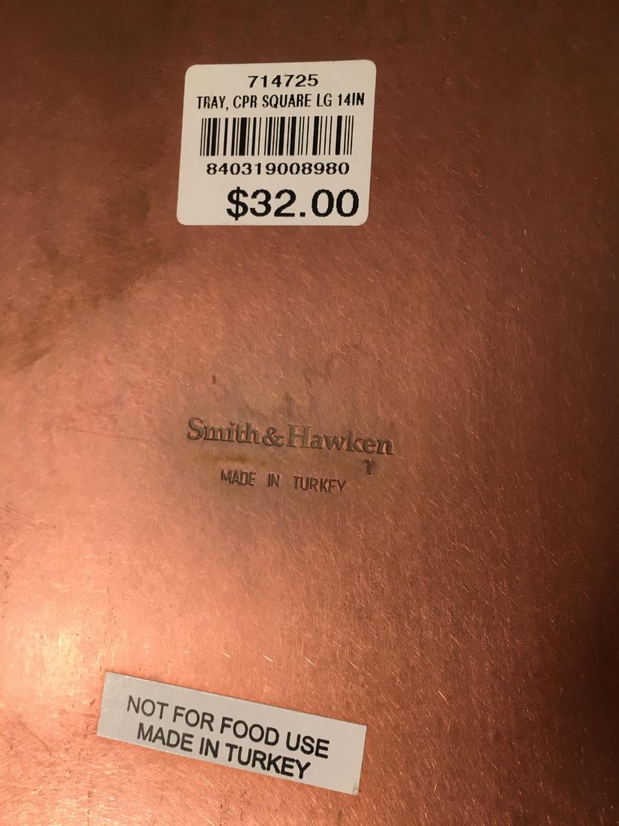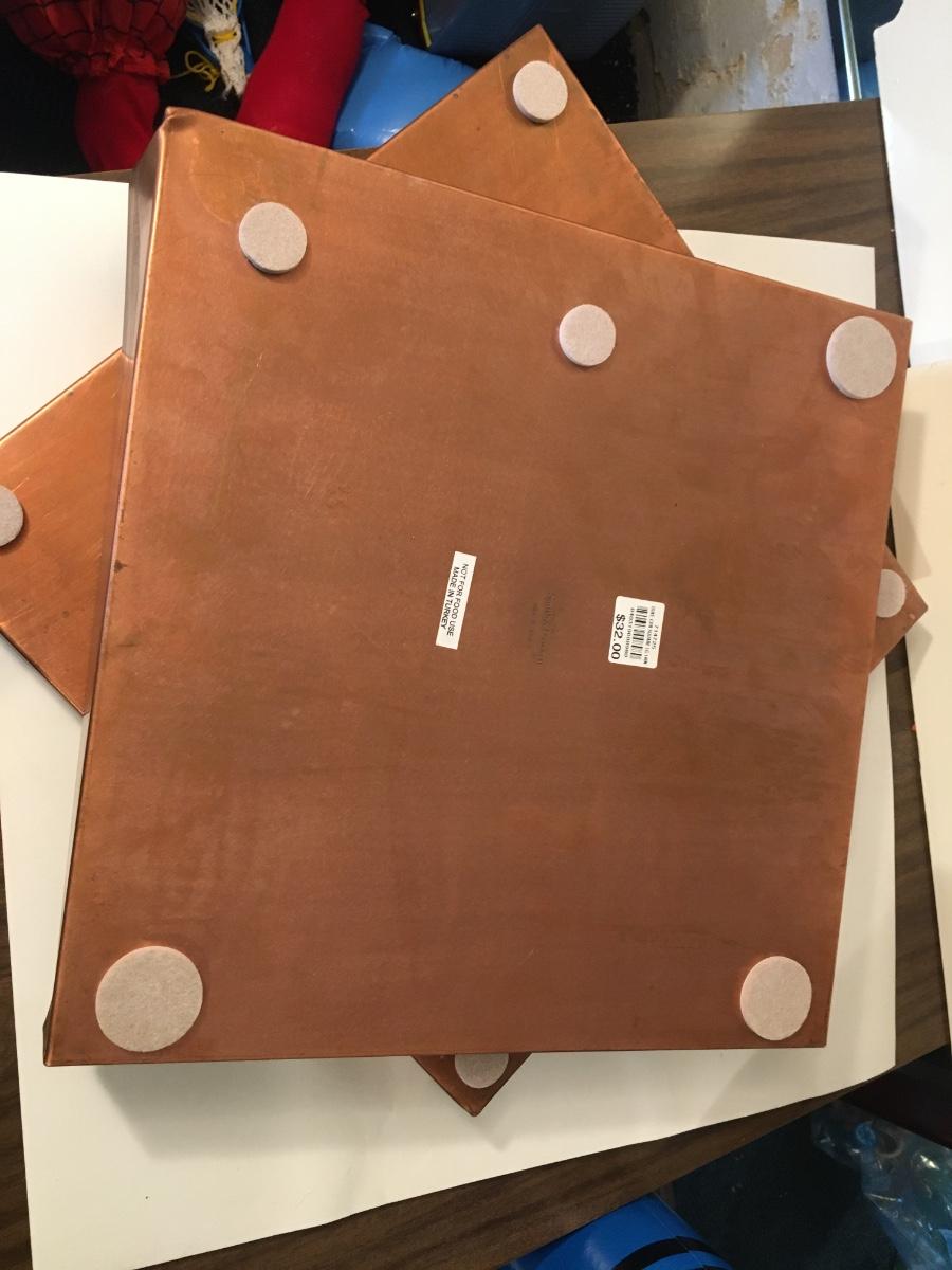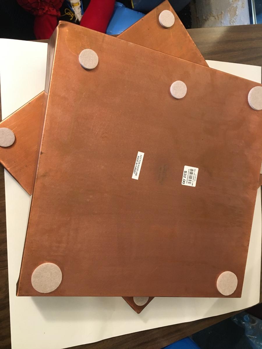 set of 2 copper trays, not to be used with food.