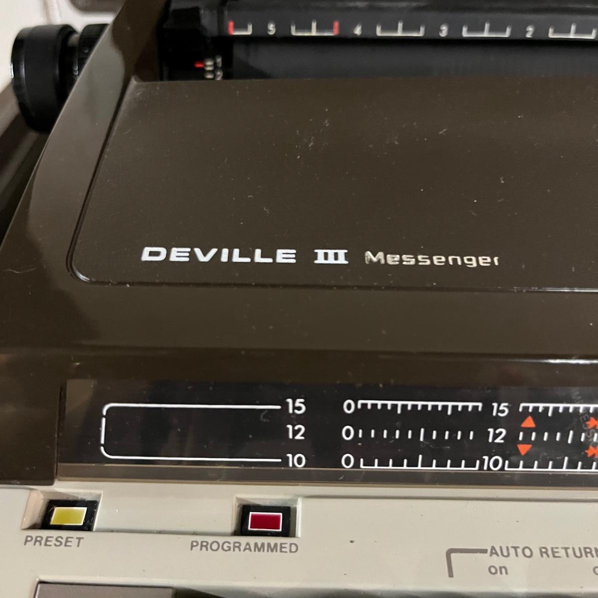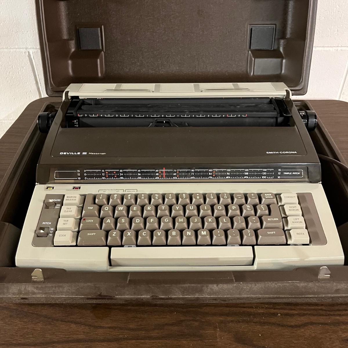 Lot includes a Smith Corona Deville III Messenger Electric typewriter with plastic case. Typewriter worked when tested, see pictures.