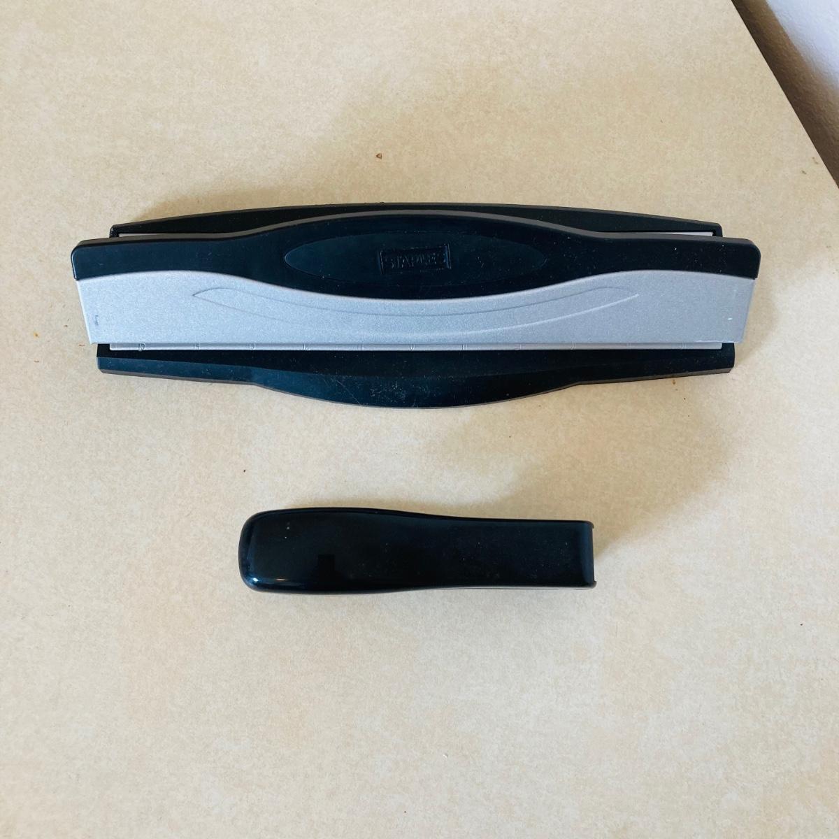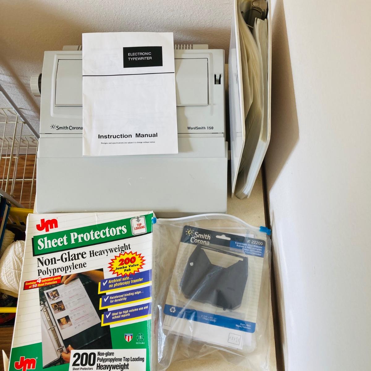 This plugs in and works. Also in this lot comes a note book filled with page protection sleeves and a box with page protection sleeves. Film ribbon and corrector/lift off spools. Staples hole puncher and a no brand stapler. Good condition.