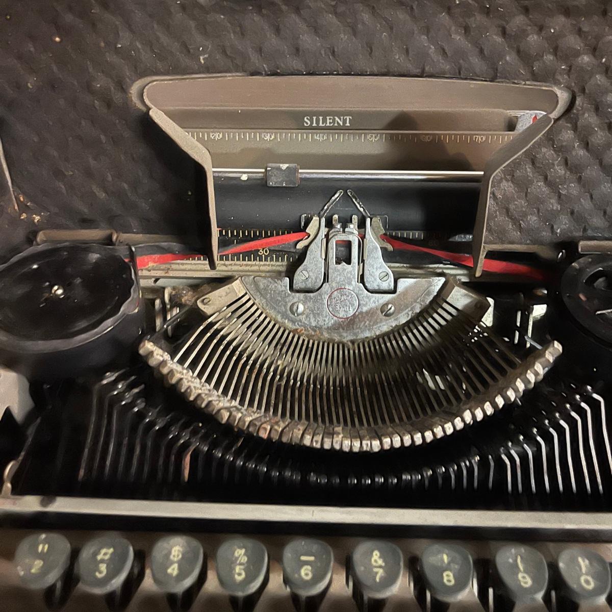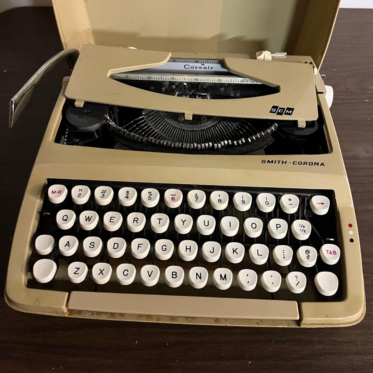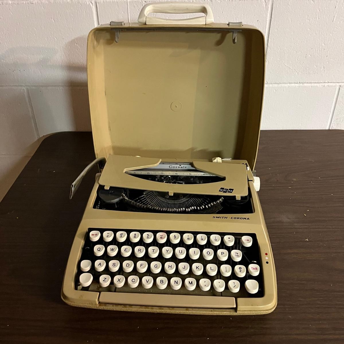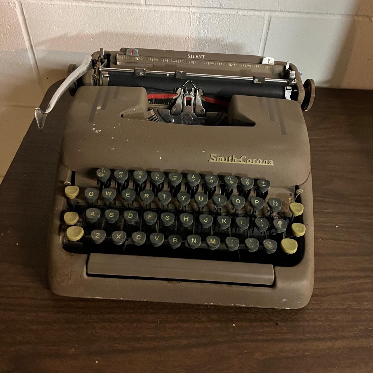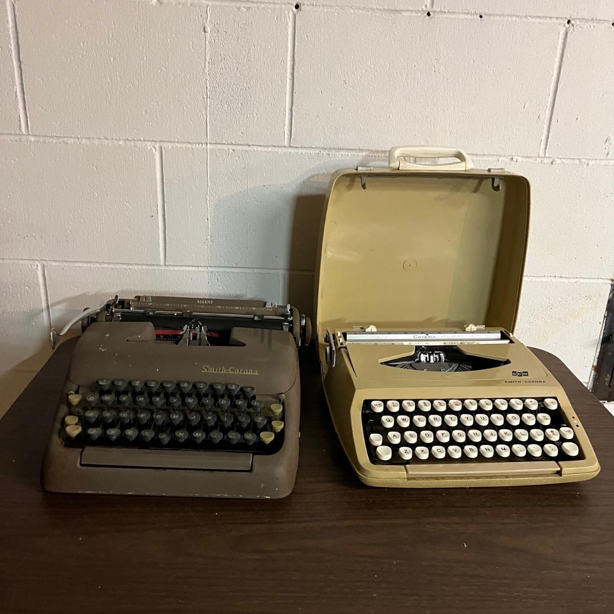 Lot includes two vintage Smith & Corona typewriters. One is a Corsair with built in case and the other is a Silent model. Silent model has some keys that stick.