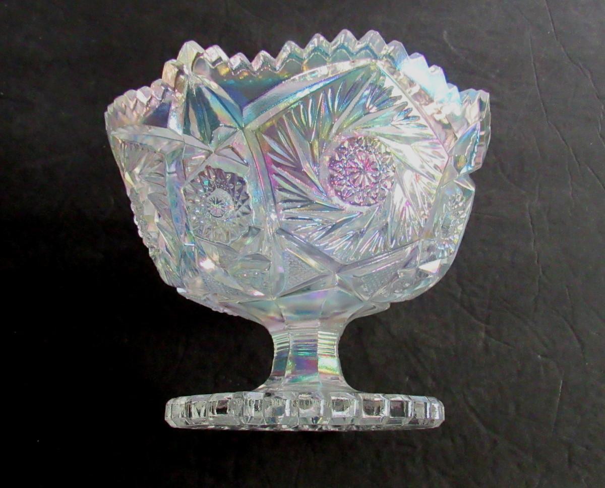 Smith Glass Clear Carnival Glass Footed Bowl