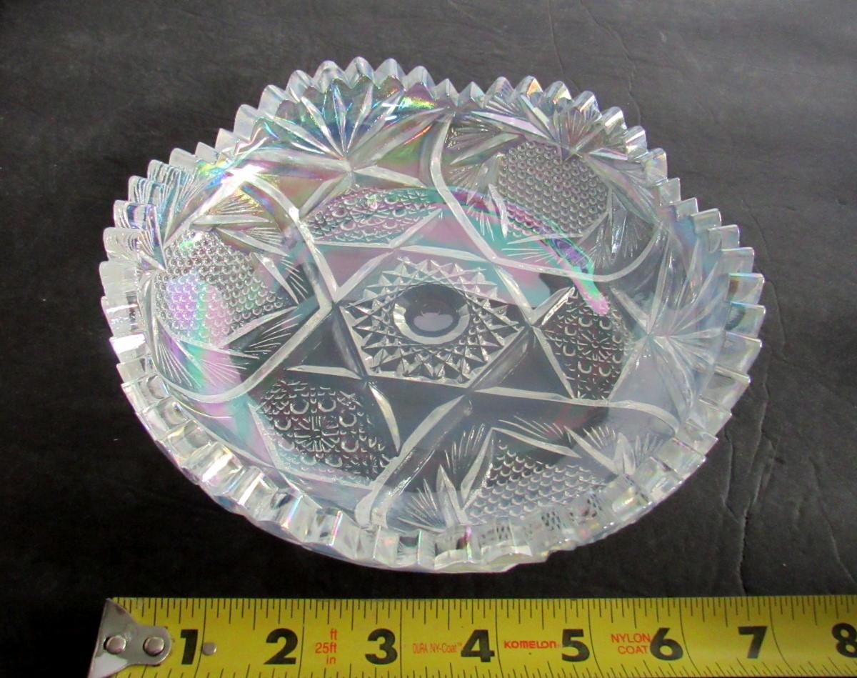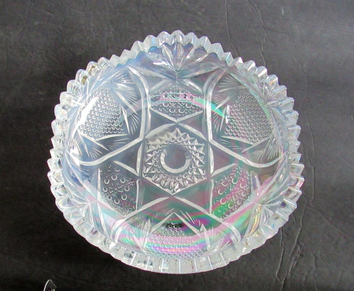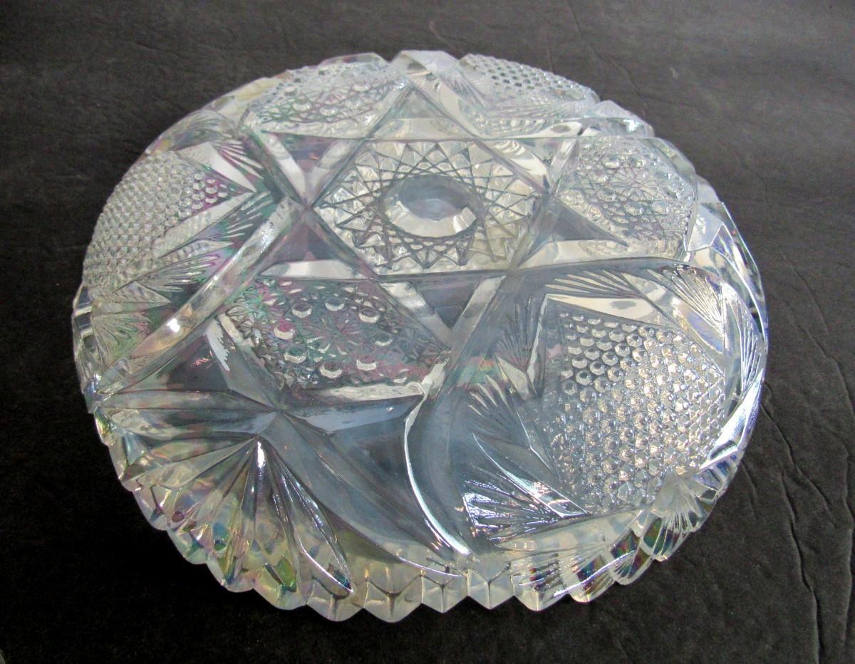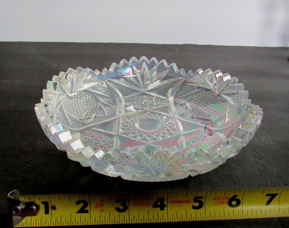 Smith Glass Clear Carnival Glass Shallow Bowl, Slight Opalescent Finish