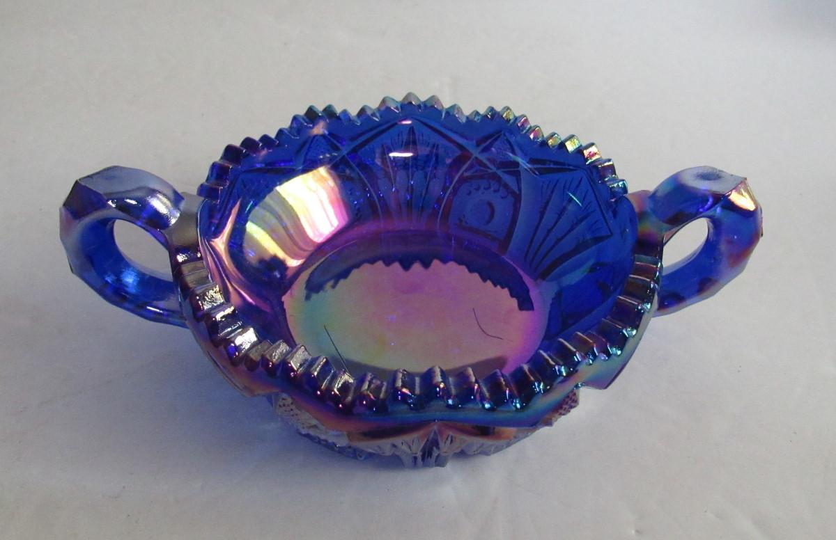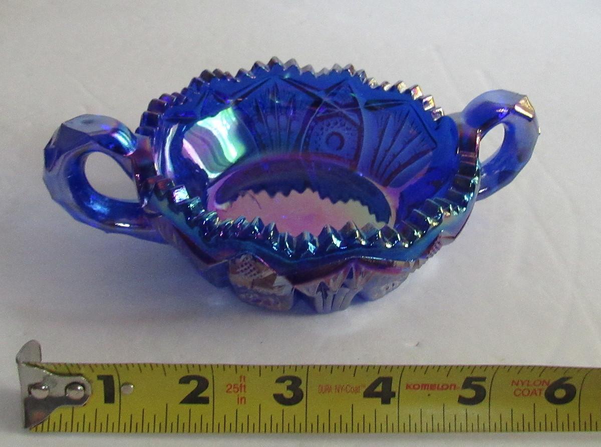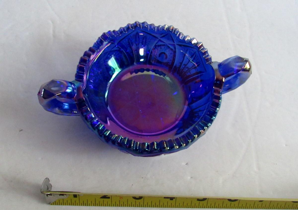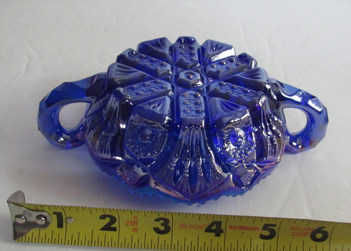 Smith Glass Cobalt Blue Carnival Handled Dish