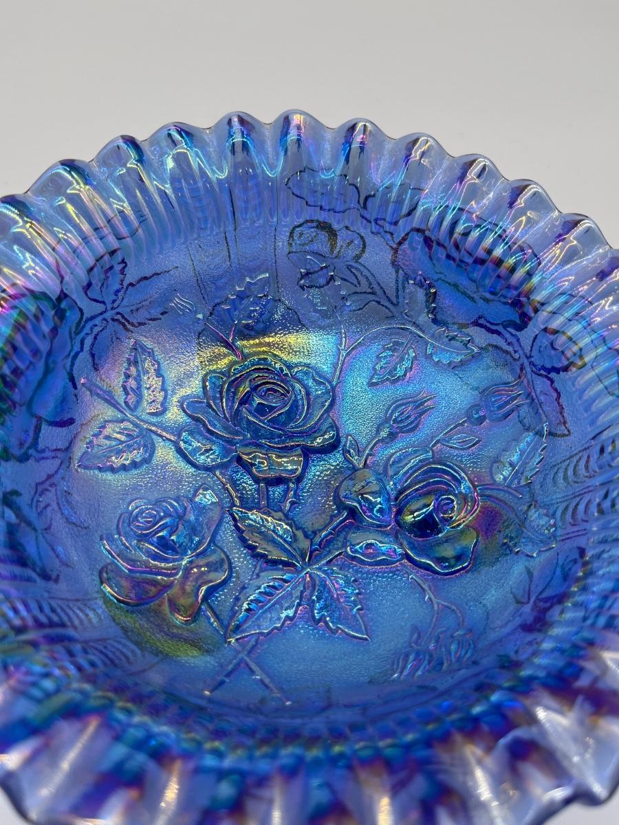 SMITH GLASS ~ Purple Iridescent ~ Carnival Ruffled Edge Rose Bowl