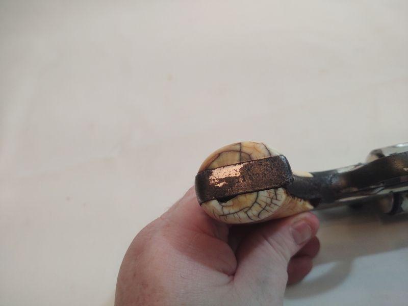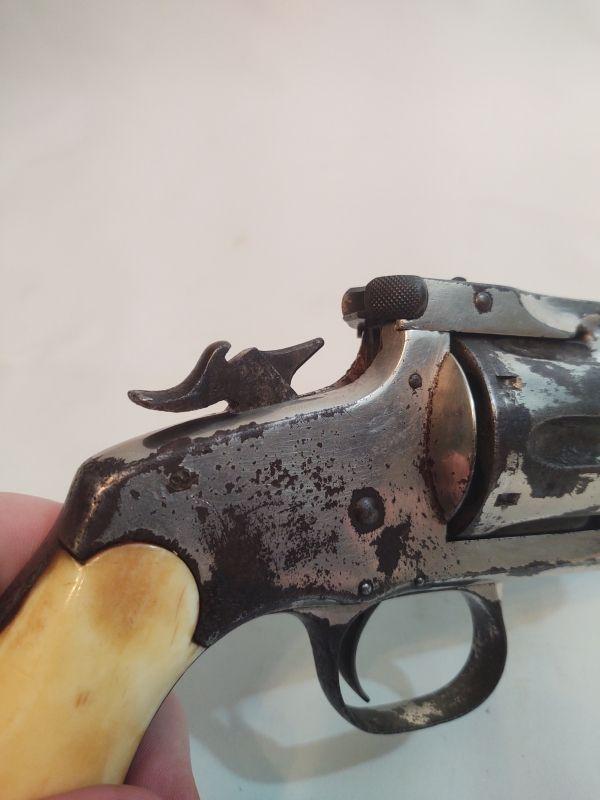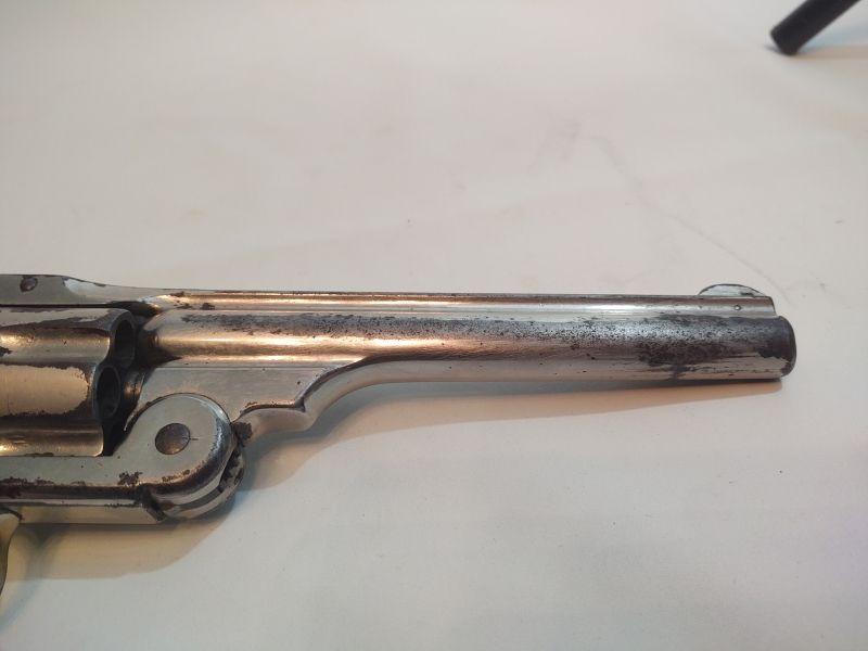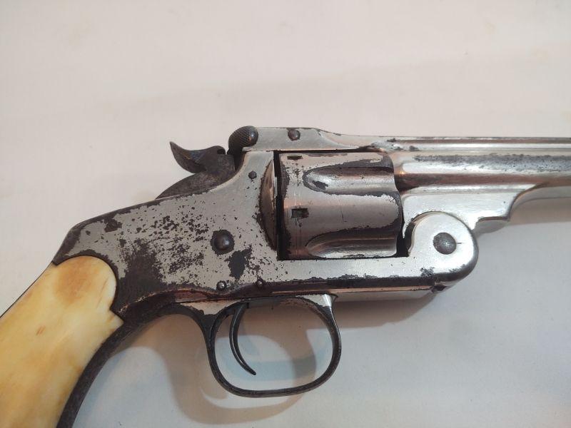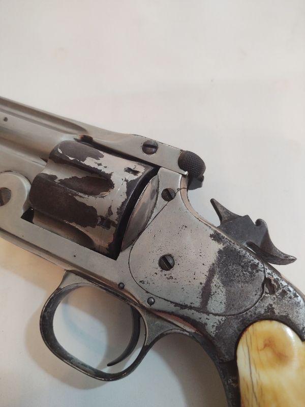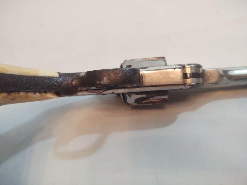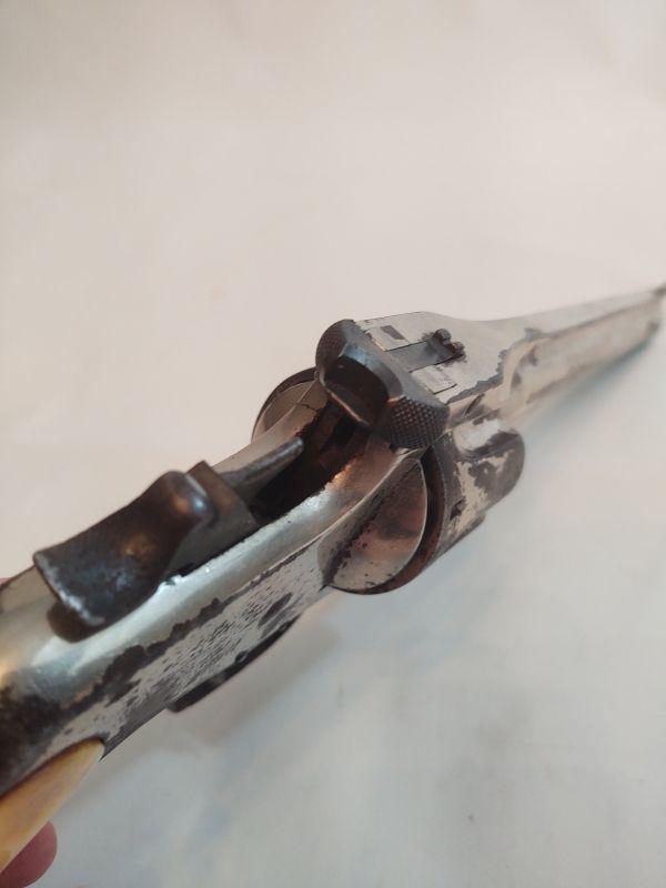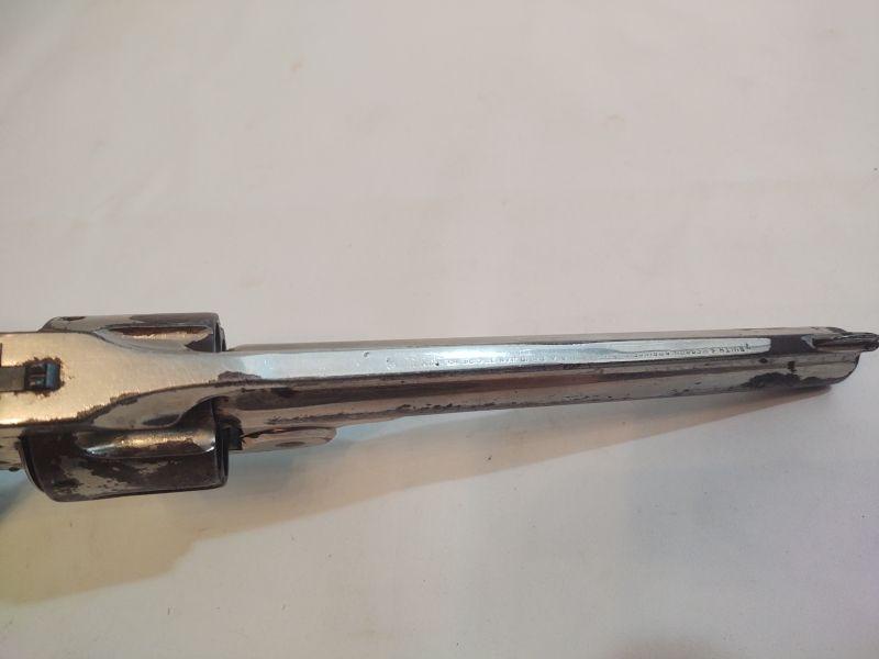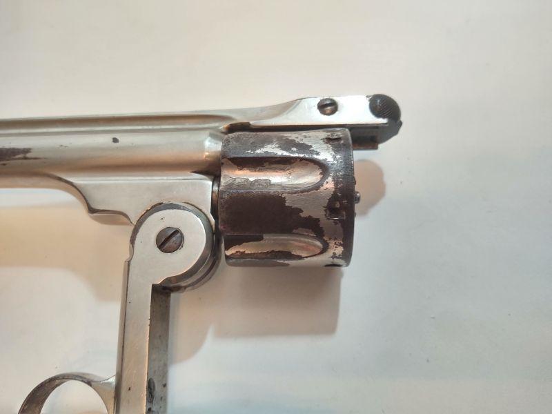 Front opening revolver has a serial number on the butt, but it's worn to the point of being non-readable. Trademark on top of frame is worn as well. Caliber cannot be read, but these were acquired with the other .38 revolvers and could possibly be .38 caliber as well. If someone has more information than we do, I would appreciate an email with any info available. Special terms & conditions for firearms will apply to this lot. Shipping is being offered. Here are the terms & conditions for firearms: TO PURCHASE ANY OF THE FIREARMS IN THIS AUCTION, YOU MUST BE LEGALLY QUALIFIED TO PURCHASE A FIREARM IN YOUR STATE. IF YOU CANNOT LEGALLY PURCHASE A FIREARM, DO NOT BID!!