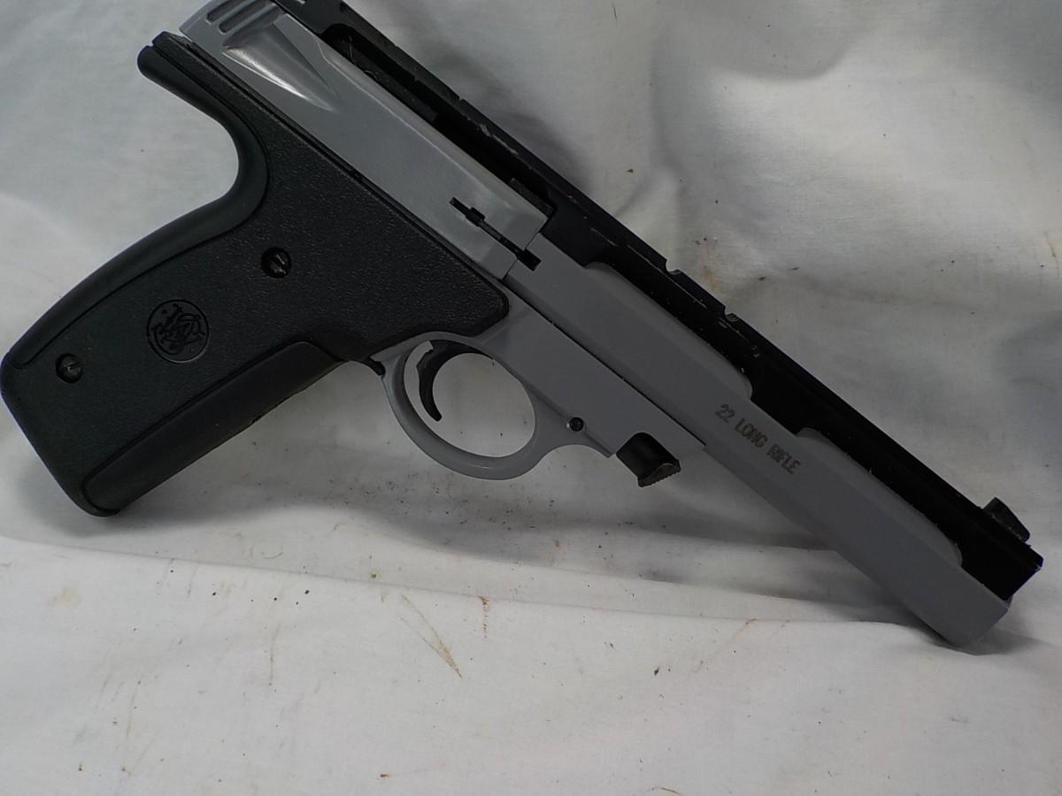S&W 22 LR target pistol , nice handle grips, bore is excellent, action super smooth, comes with a case and papers.