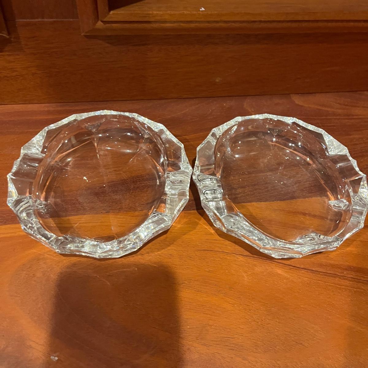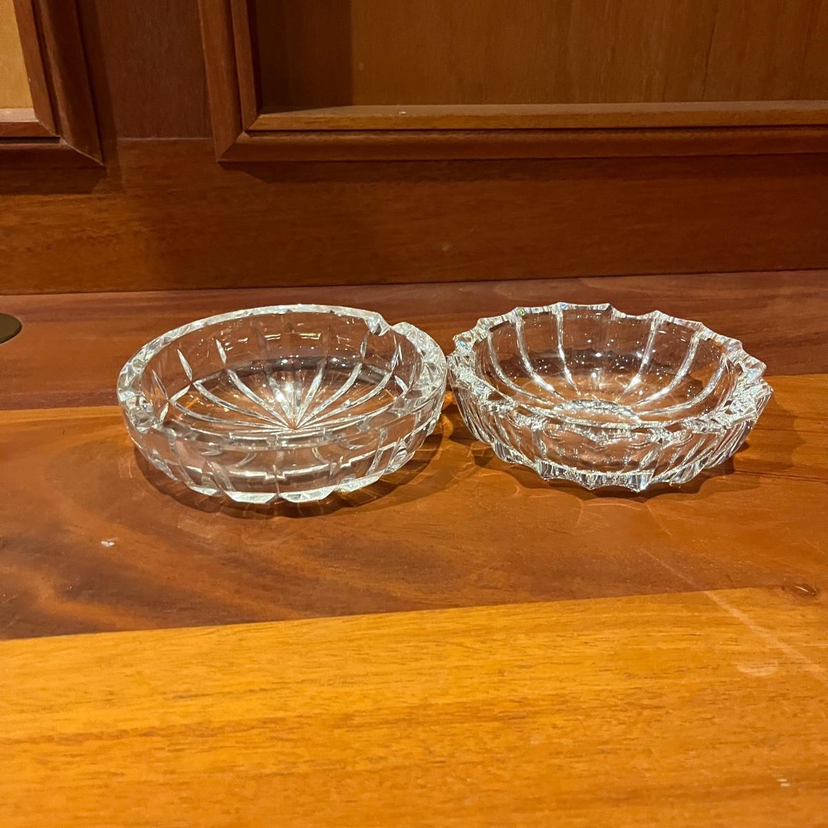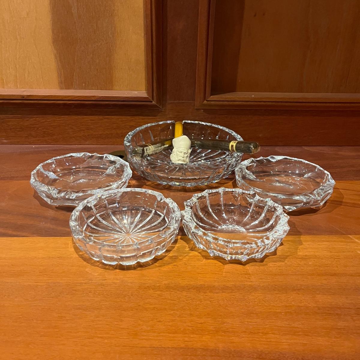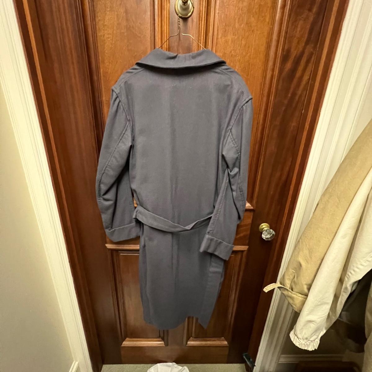 This vintage smoking jacket has no material tag but has a wool feel to its grey fabric. Also no size label but appears to be a medium or large. Sew on patches have been added, see images. Also included is a collection of five glass ashtrays two hand made cigars from Nicaragua and a pipe that appears to be resin. Largest ashtray measures 8”D x 2”H. Jacket measures 20” chest x 43” long.