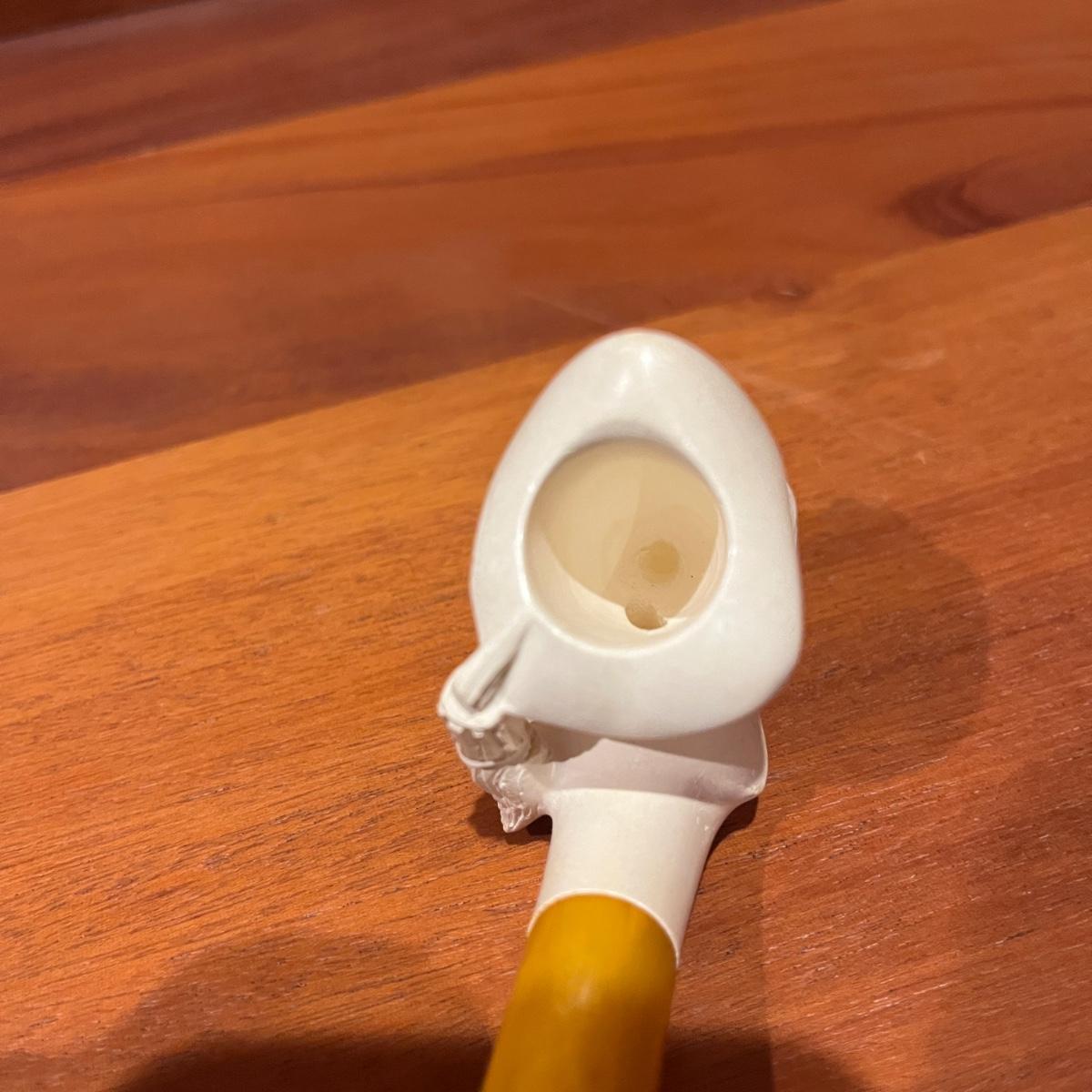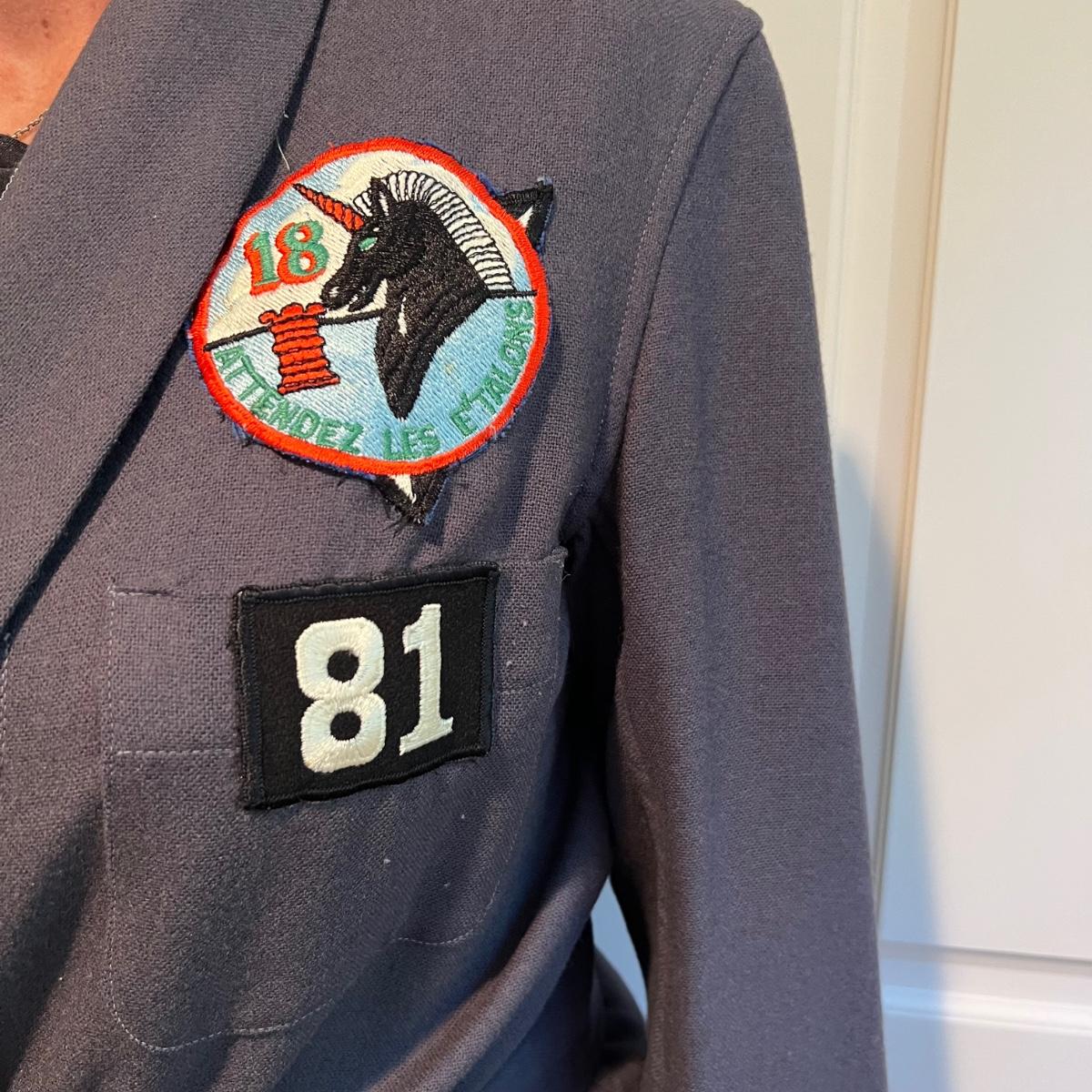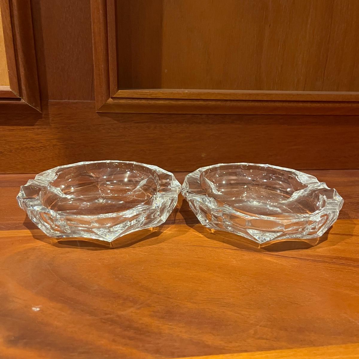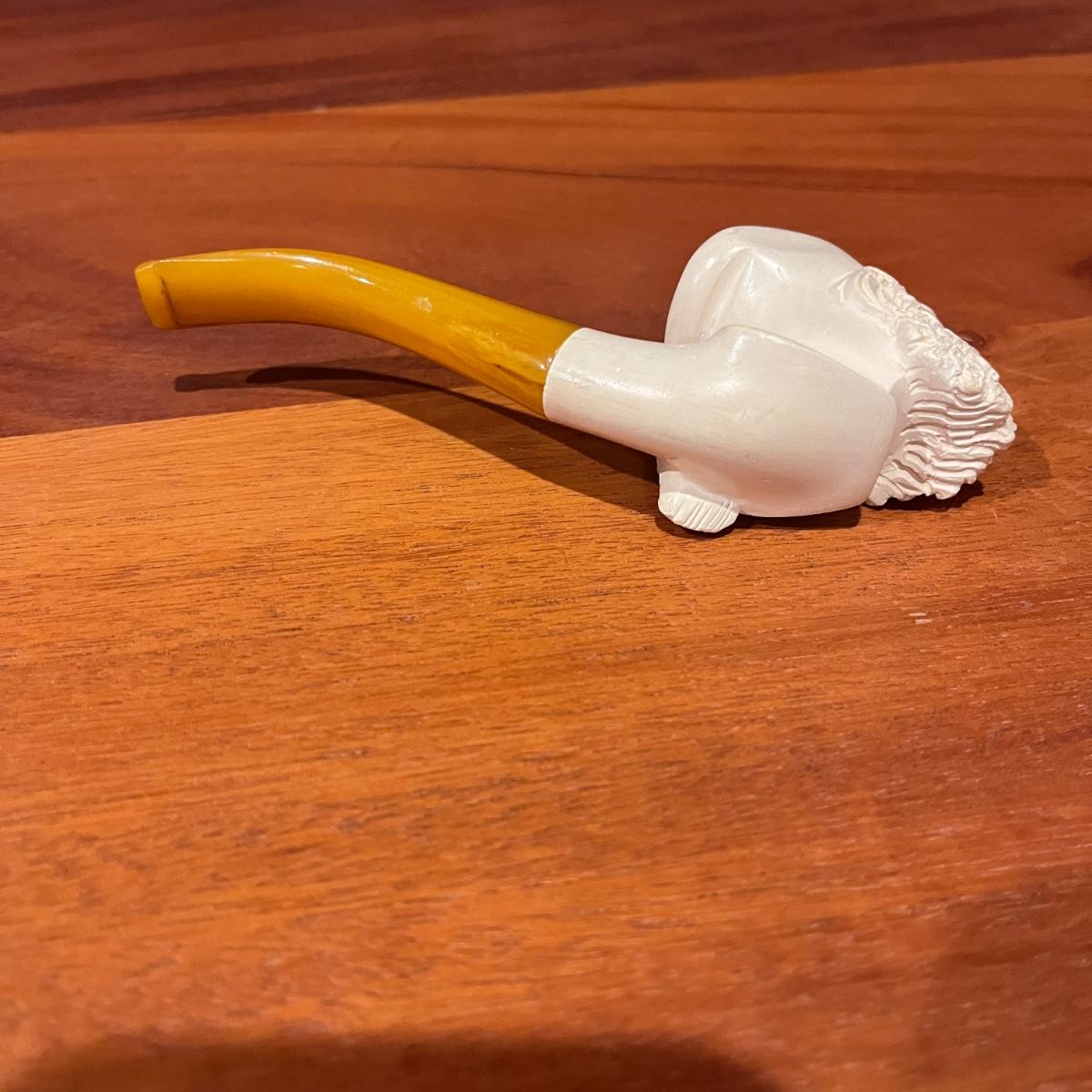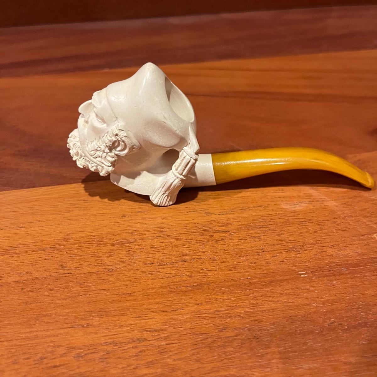 This vintage smoking jacket has no material tag but has a wool feel to its grey fabric. Also no size label but appears to be a medium or large. Sew on patches have been added, see images. Also included is a collection of five glass ashtrays two hand made cigars from Nicaragua and a pipe that appears to be resin. Largest ashtray measures 8”D x 2”H. Jacket measures 20” chest x 43” long.