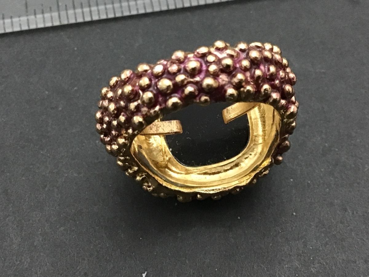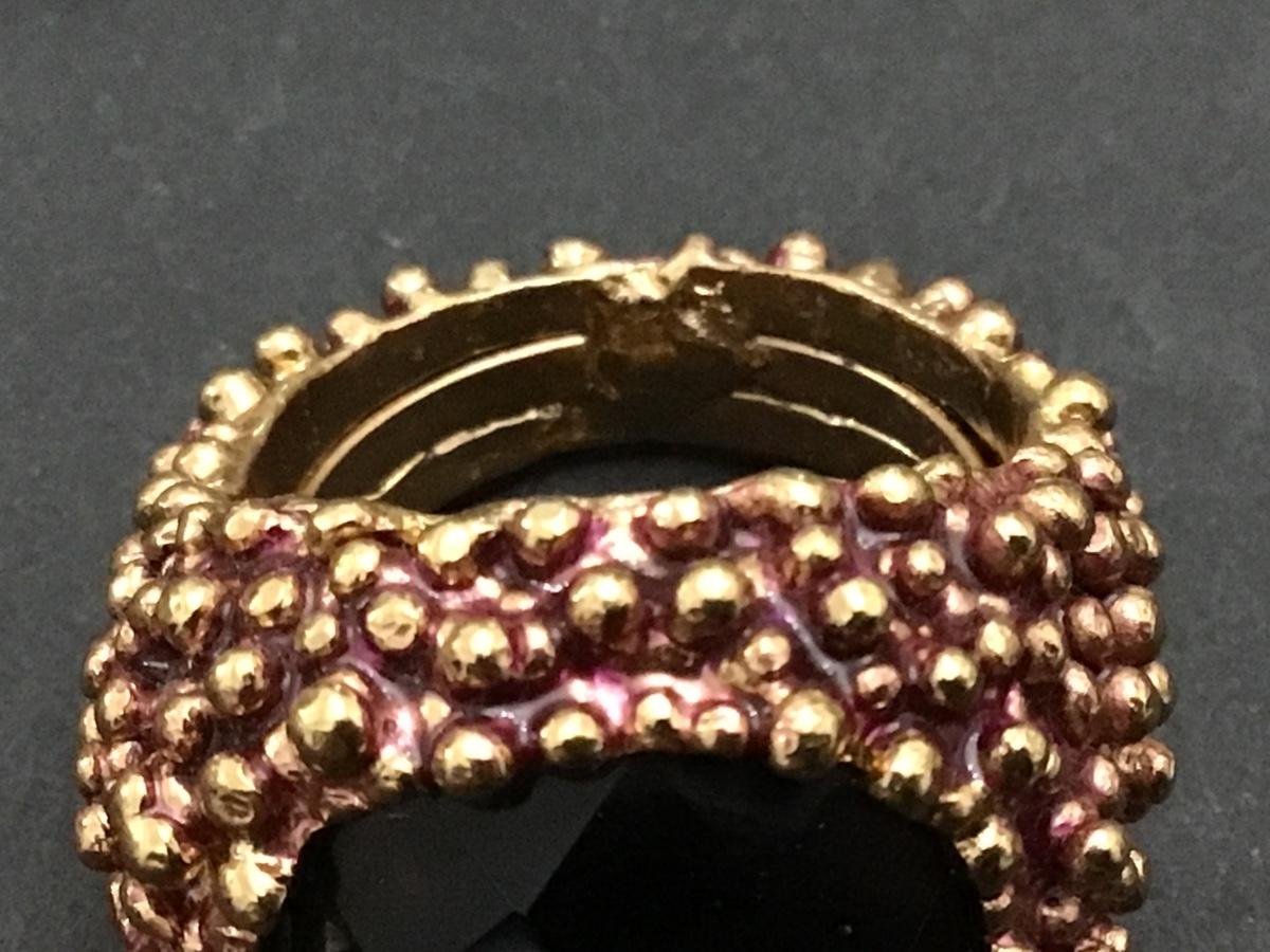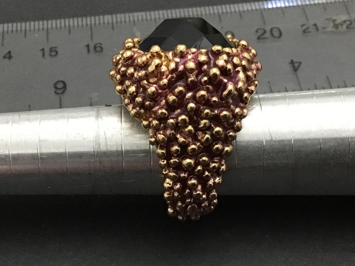 Smokey Amethyst Glass On Pebbled Gold Tone with purple Flash Circa 1980. Excellent