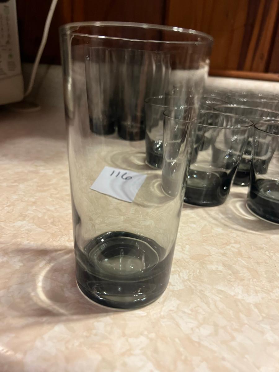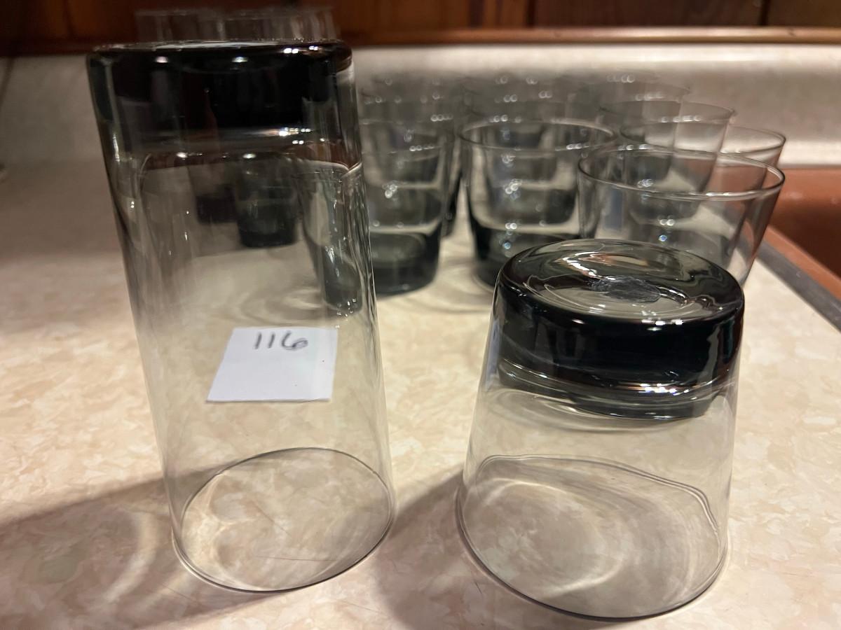 6 glassees 5.5" x 3" and 14 glasses 3.5" x 3.5"