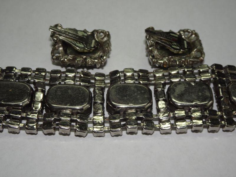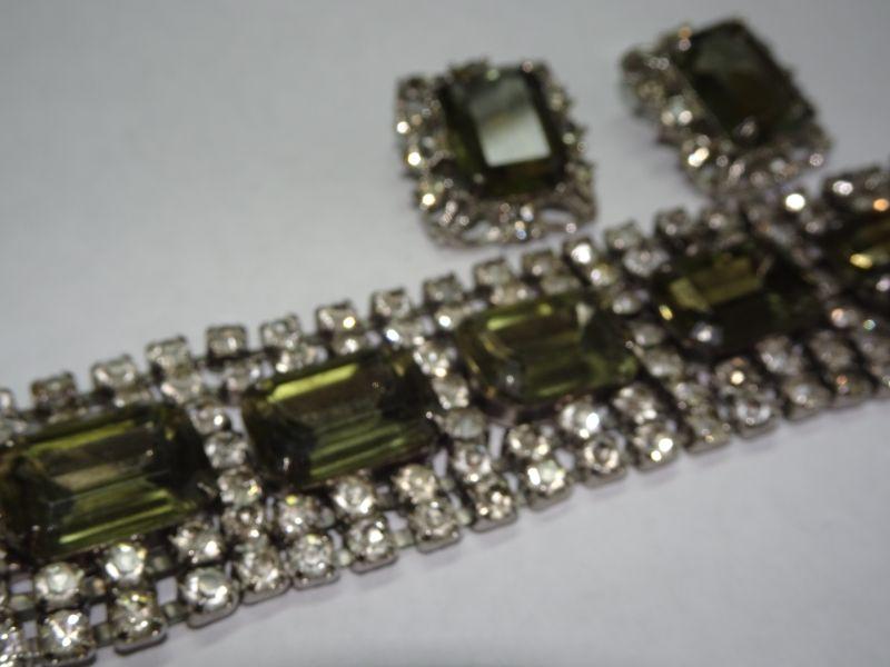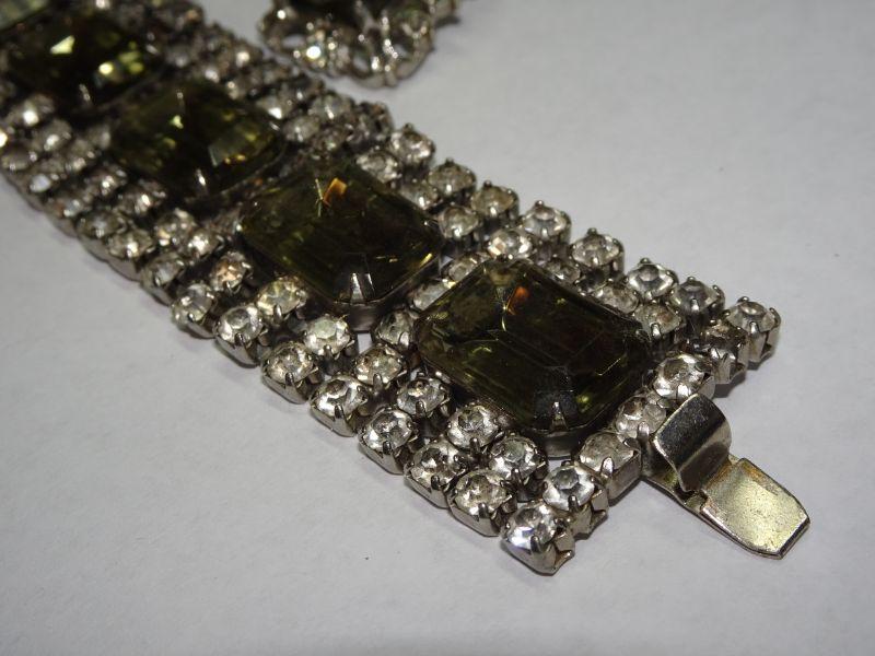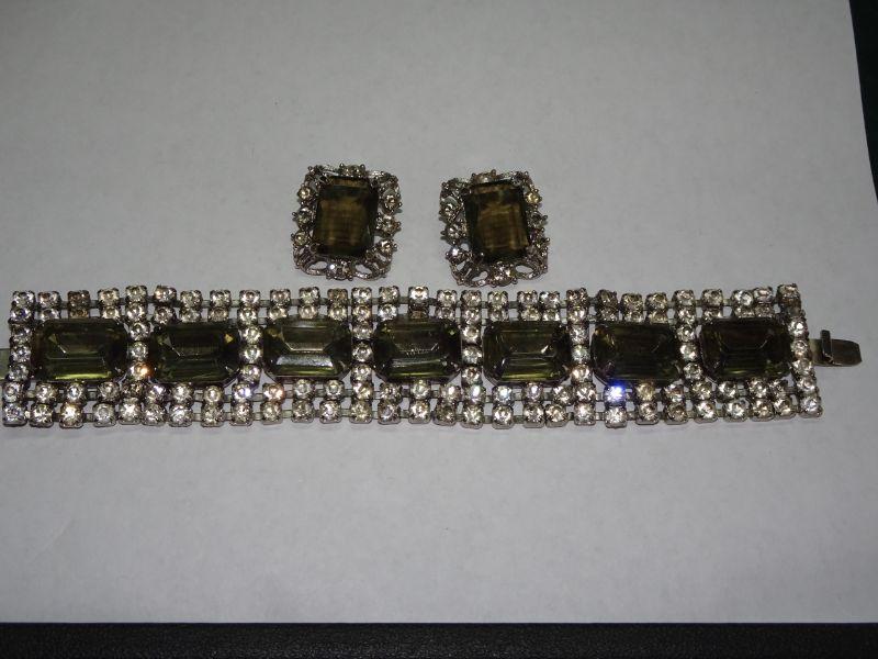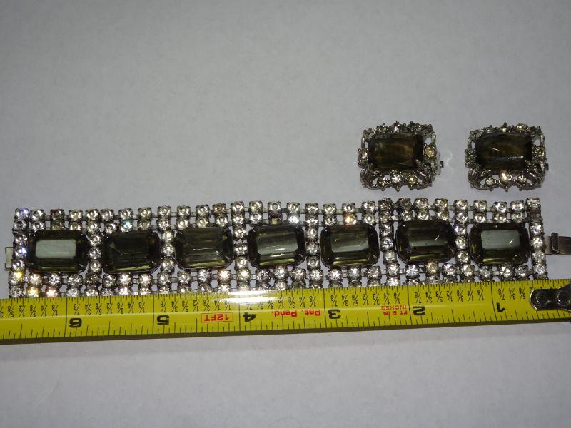Smokey Gray Rhinestone Bracelet & Matching Clip On Earrings, Sara Coventry