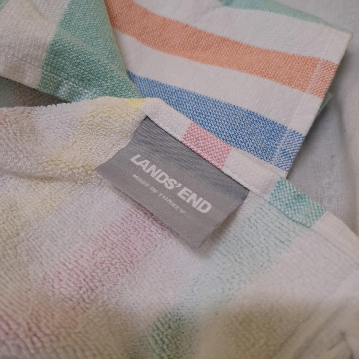 A collection of seven cotton throws, coverlets, tablecloths and picnic blankets all approximately 35" x 70." Makers include Smyrna Turkish Cotton, Sandcloud, Ladinne and Land's End. All appear to be in good condition. Shipping available.