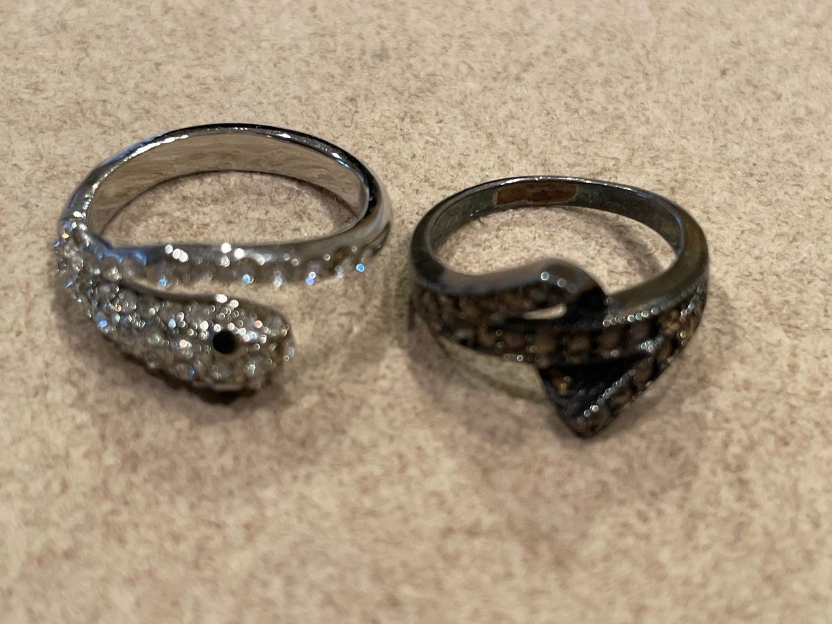 Snake and hematite rings