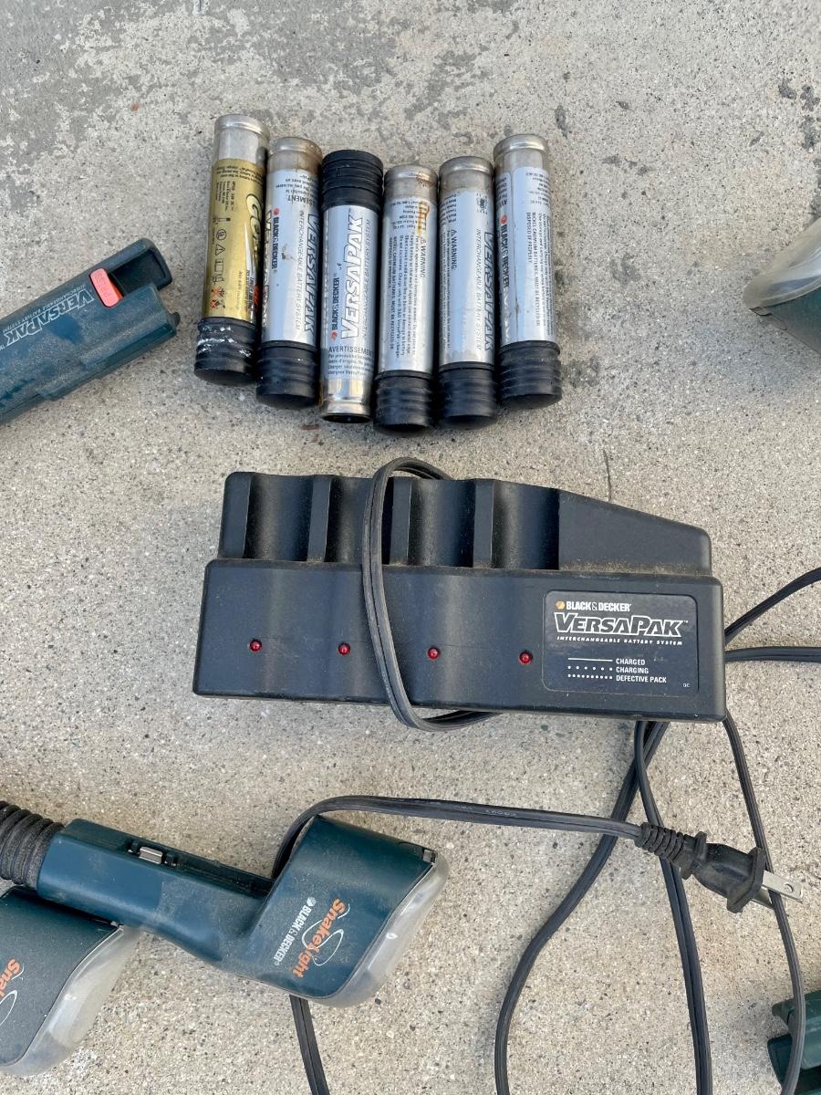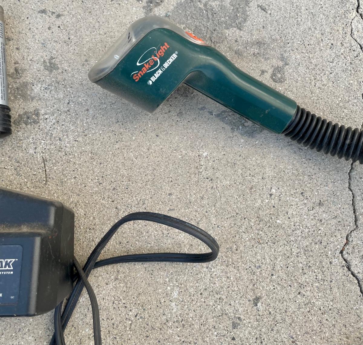 3 Black and Decker Snake Lights with Versa Pak Batteries and Charger, untested.