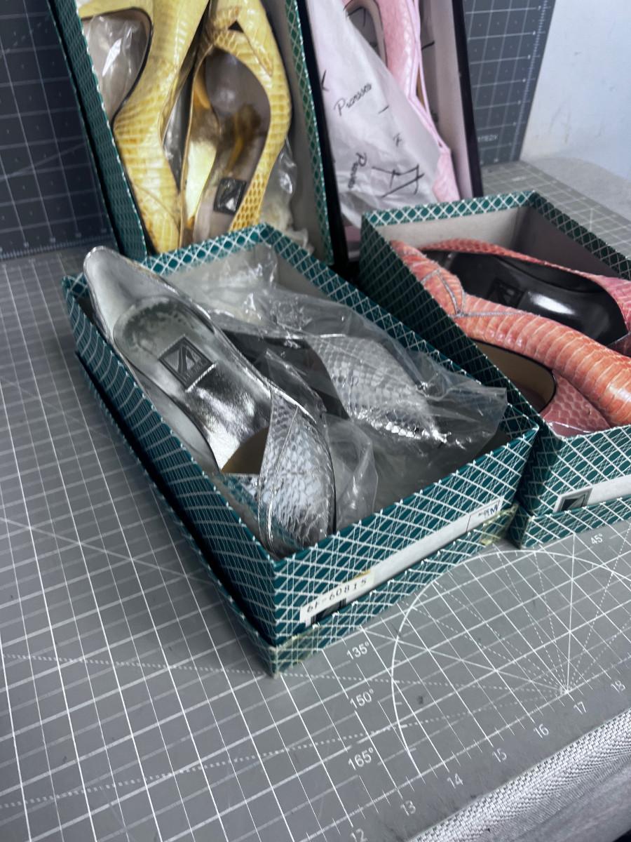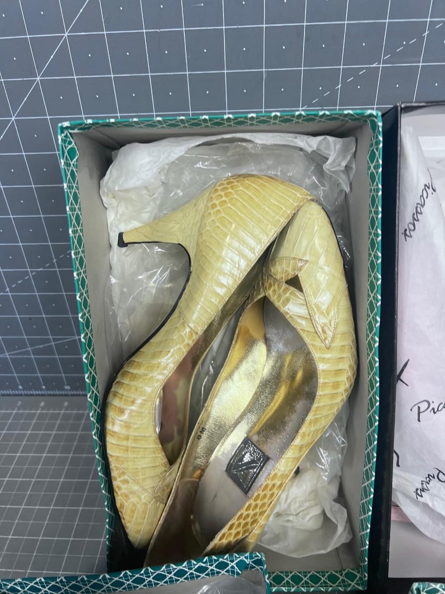 Snake Skin Heels Size 8 (4) Pink, Yellow, Silver