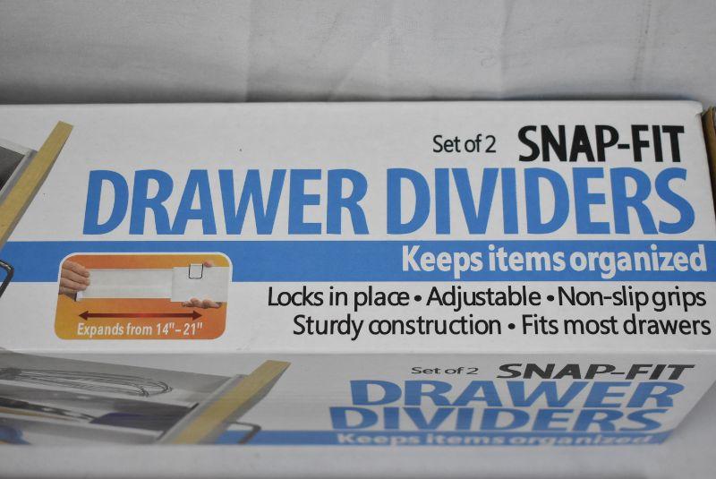 Snap-Fit Drawer Dividers, set of 2, expands from 14"-21" - New