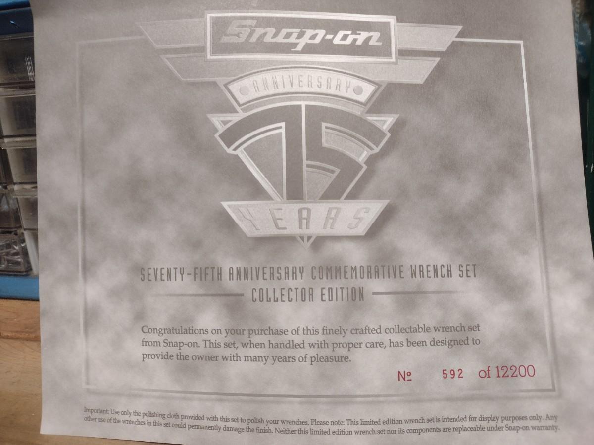 Snap-On 75th Anniversary Hand Wrench Set in Collector Case with C.O.A. Numbered Limited Edition