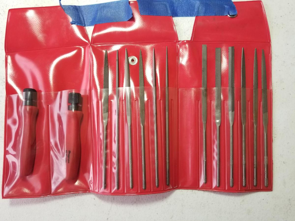 Snap-On HBFN120A 12 PC Swiss Needle File Set With 2 Red Handles Carry Pouch