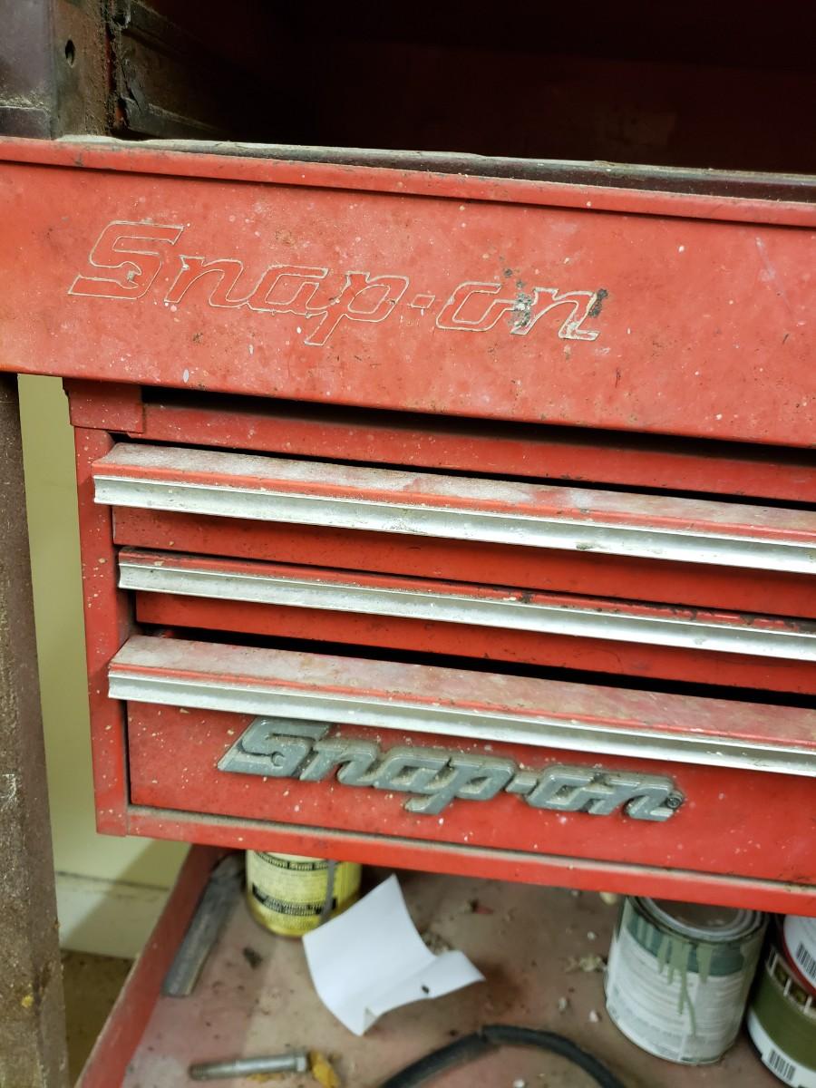 Tool box has a little wear to it. Bottom shelf contents not included. See pictures for more details.