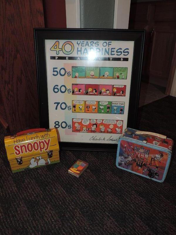 SNOOPY LUNCH BOX AND FRAMED POSTER