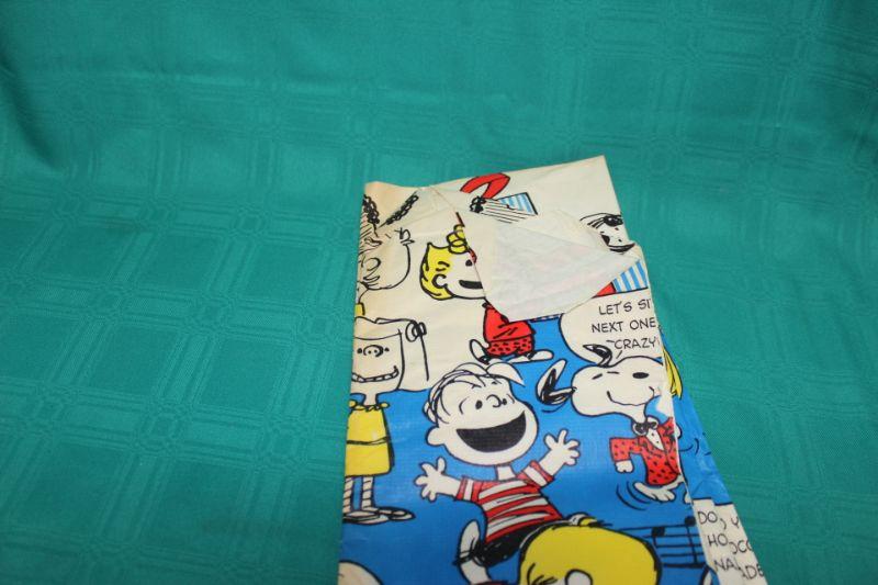 Vintage Peanuts gang paper party tablecloth. There is some creases, folds, and discoloration. Discoloration is along the folds mostly and more on the outer then inner pieces. Does not look like it was ever used otherwise. The colors are still bright and vibrant.