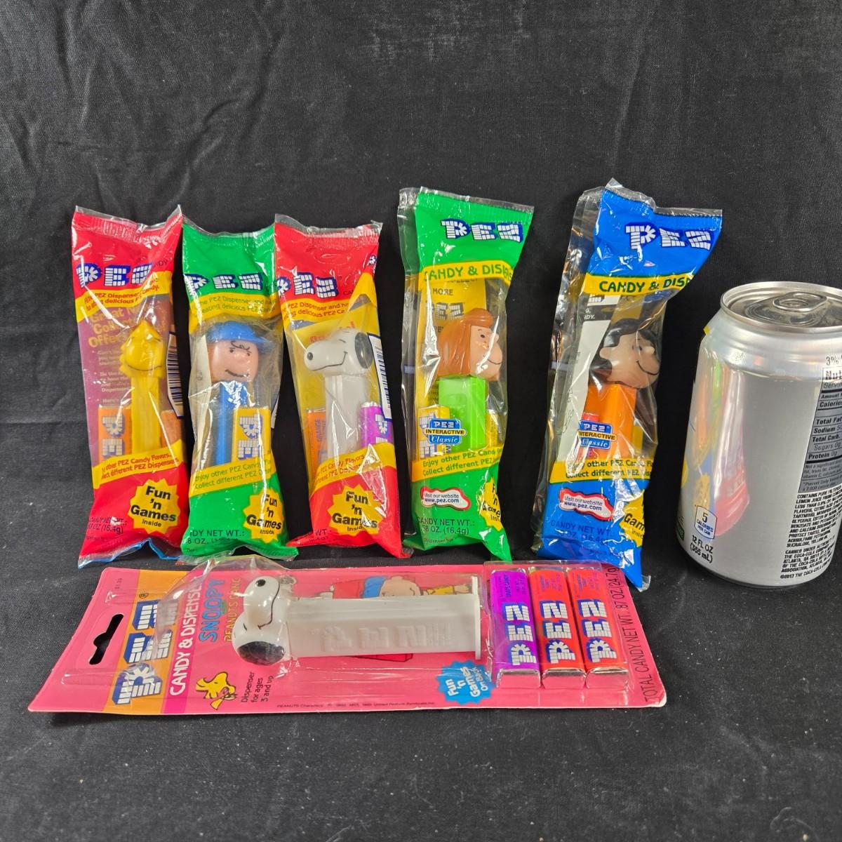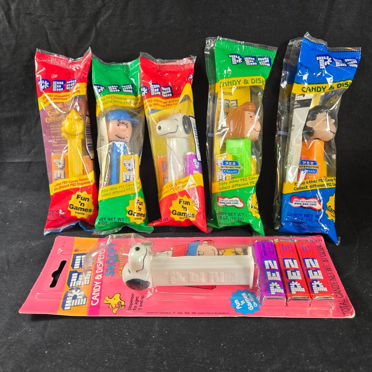This auction lot is for Snoopy Characters - Pez Dispensers. These are a vintage Snoopy Collectible. This is a grouping of unopened Snoopy Characters Pez Dispensers, plus an extra Snoopy. Total of 6.