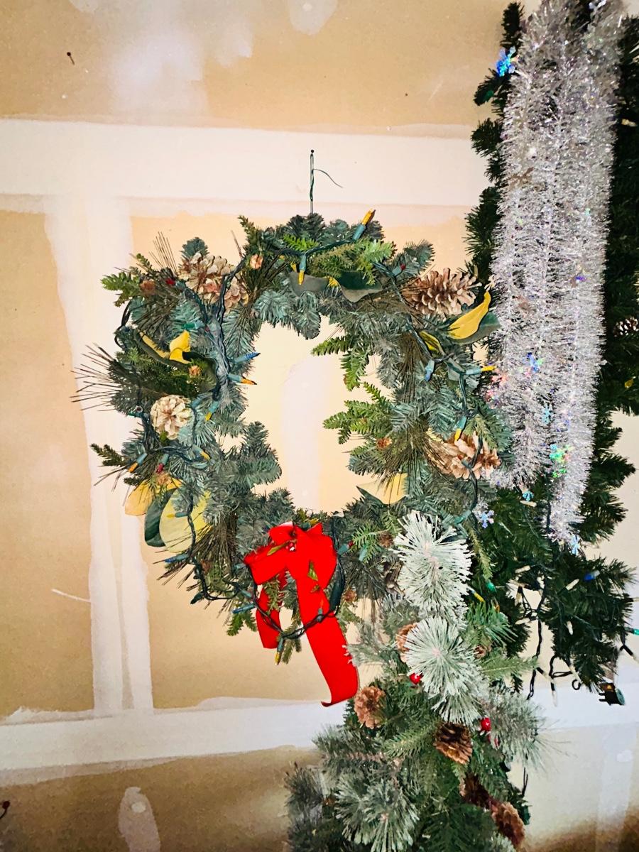 SNOOPY CHRISTMAS, A TREE WREATH AND GARLAND