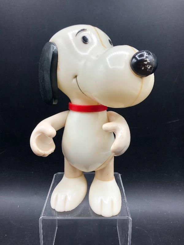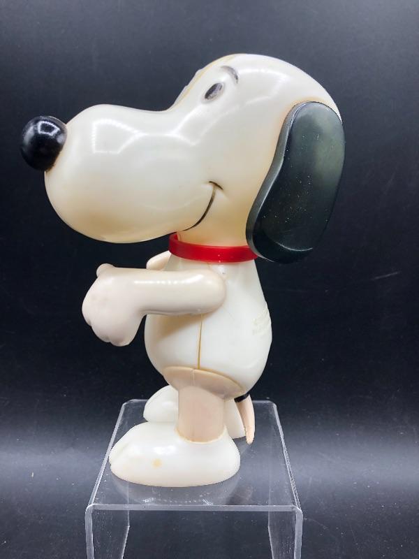 Vintage plastic Snoopy toy. Moveable arms and legs. Good vintage condition. About 6.5" tall.