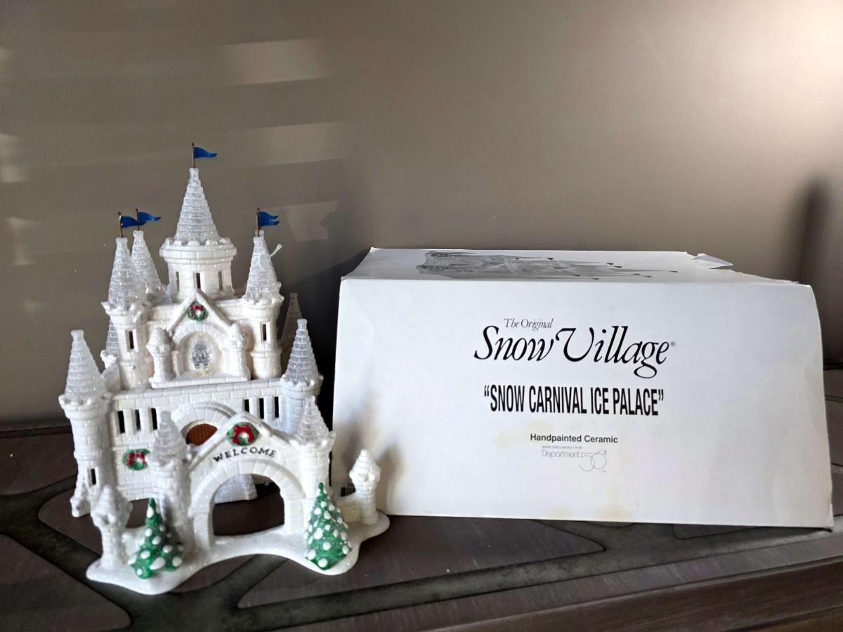 Dept. 56 Snow Village, "Snow Carnival Ice Palace" in original box. Some blue flags are missing.