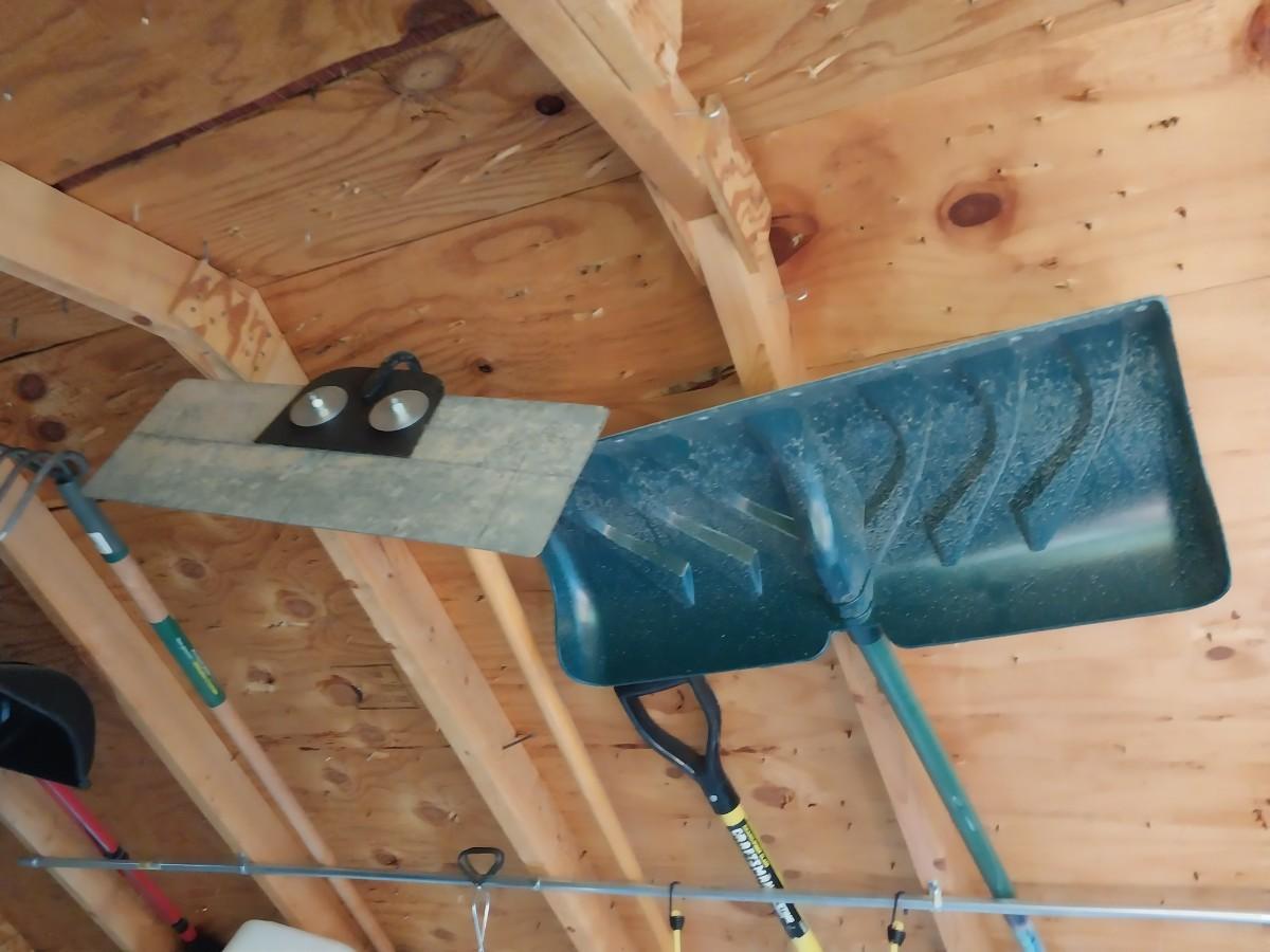 TOOLS ARE IN THE RAFTERS OF THE SHED AND YOU'LL NEED TO TAKE THEM DOWN
