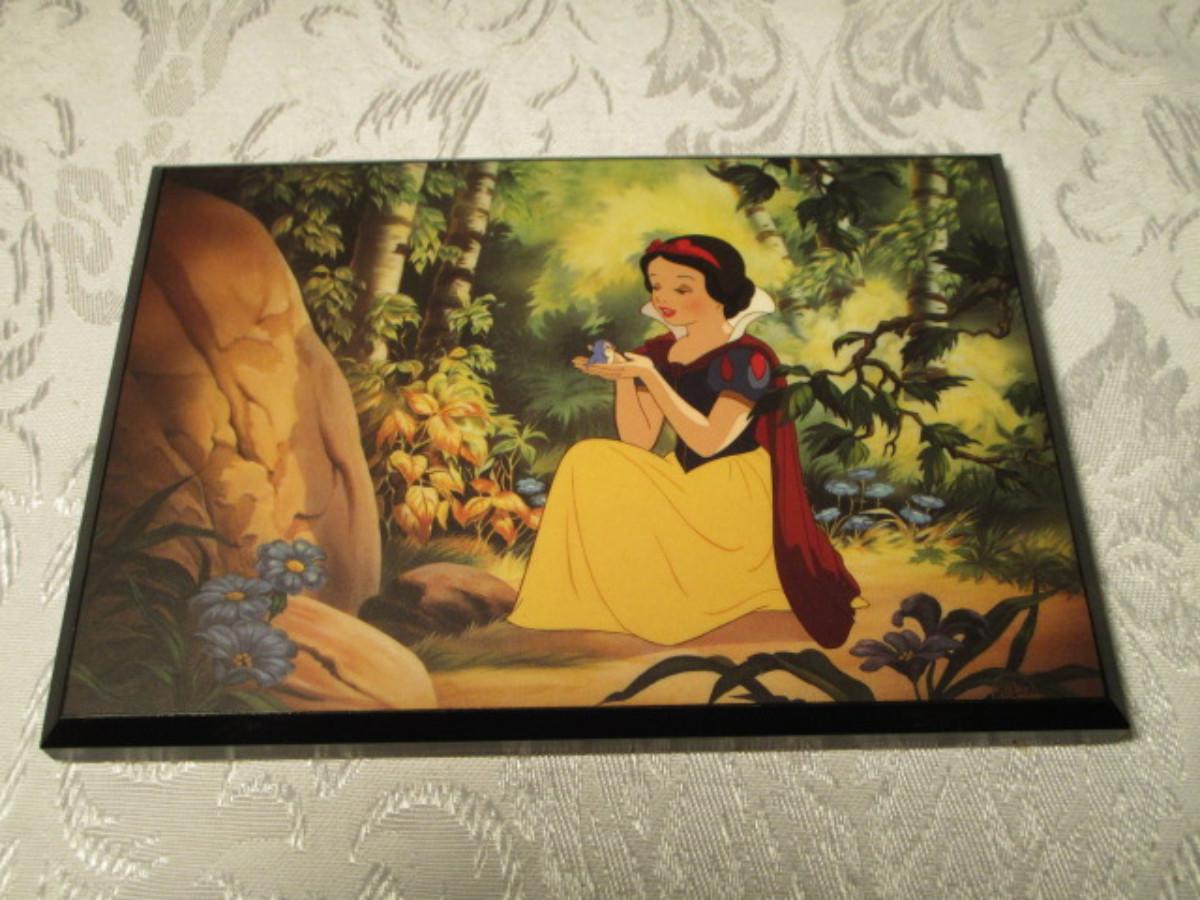 Snow White with a little bird wooden plaque