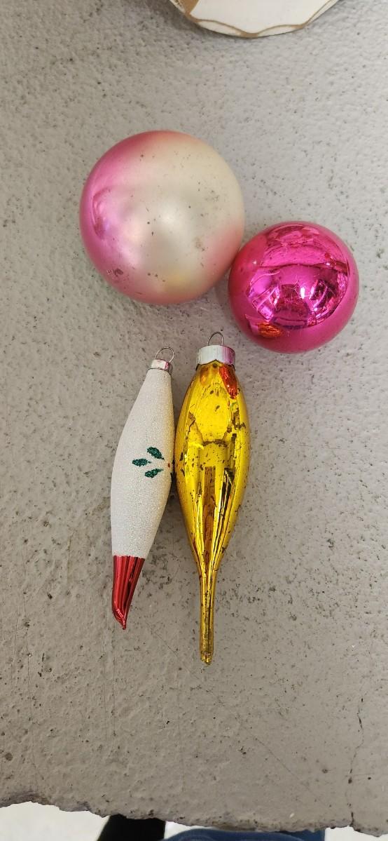 Big metal snowflake bowl, Orrefors Holly votive, painted wine glass, vintage ornaments and more