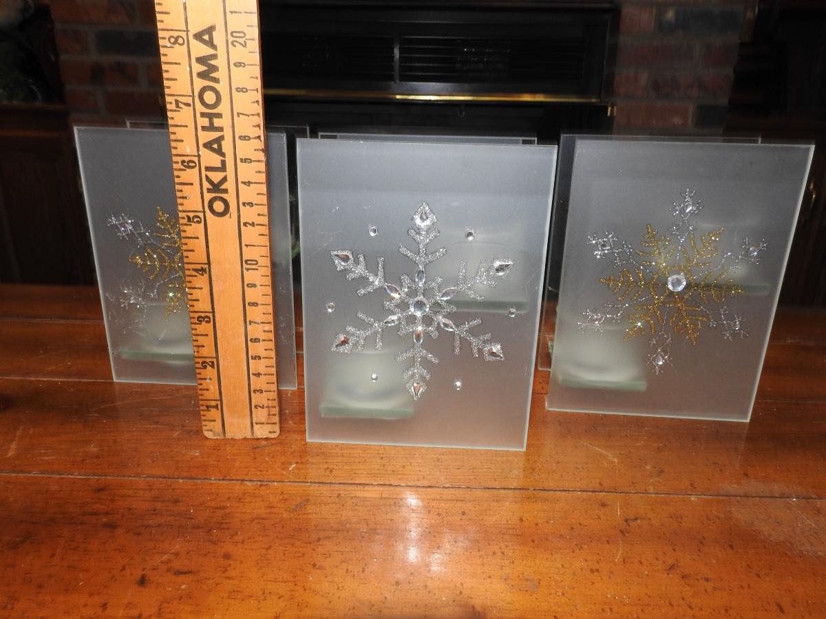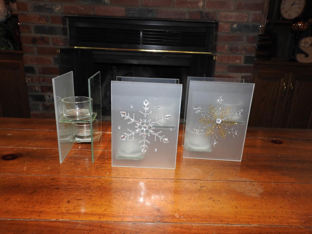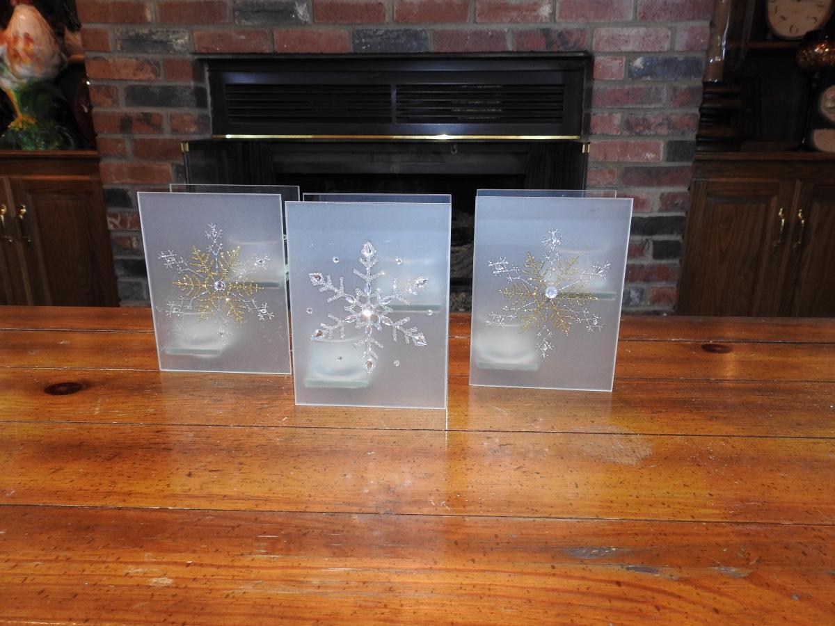 Trio of tea light holiday candleholders. Perfect holiday decor. Good used condition.