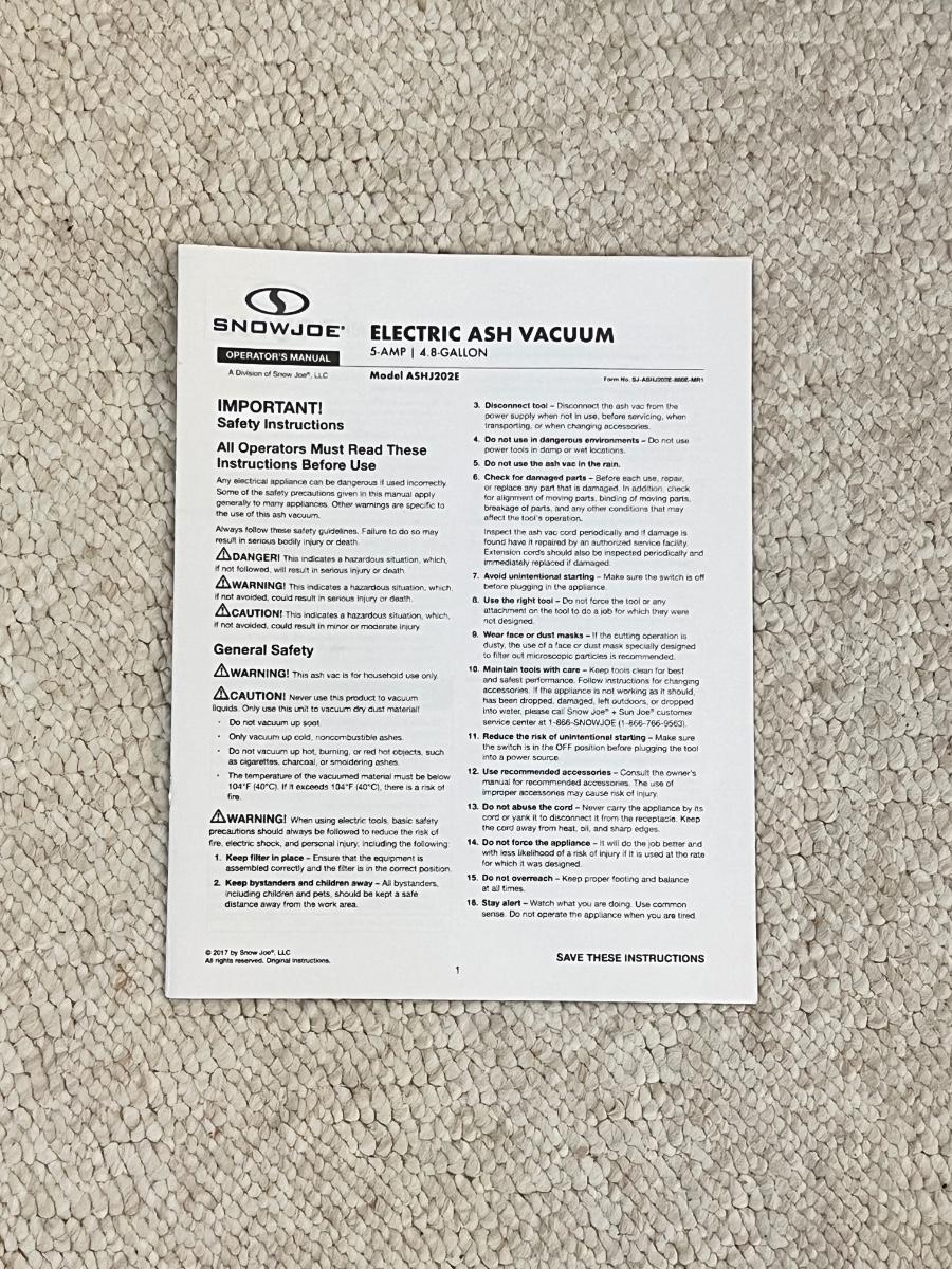 SNOWJOE ~ 4.8 Gallon Electric Ash Vacuum