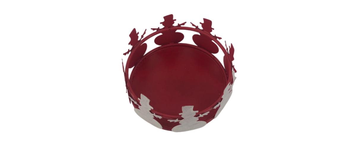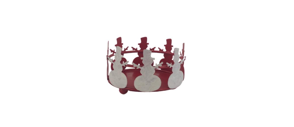 Red and white snowman candle holder. Fits Bath & Body Works 3-wick candles or similar sizes. Measures 4.5” inside diameter and 3” in height. Unbranded, candle not included.