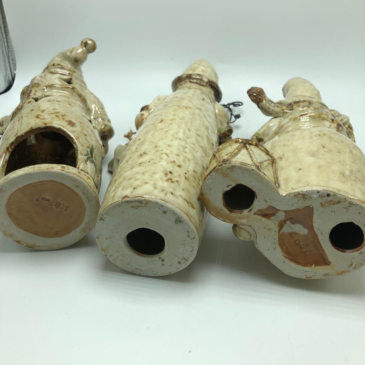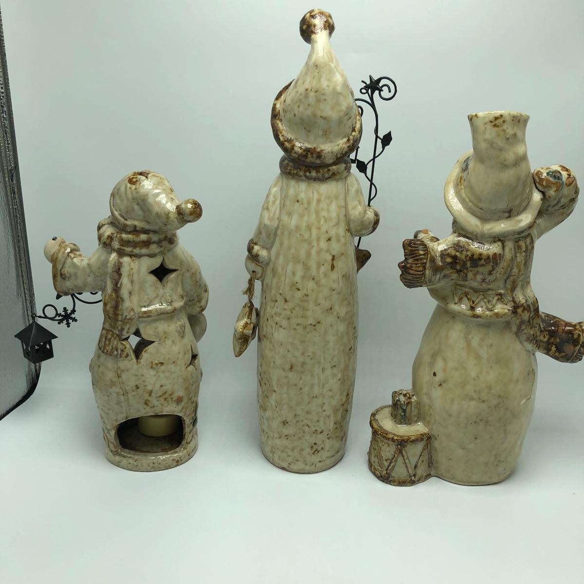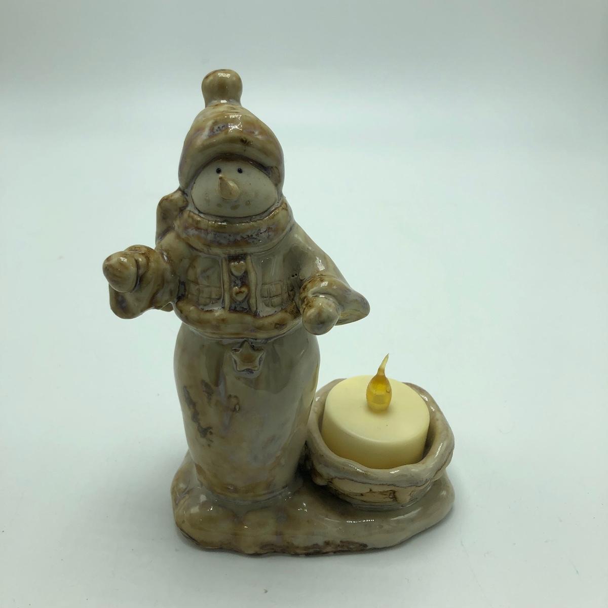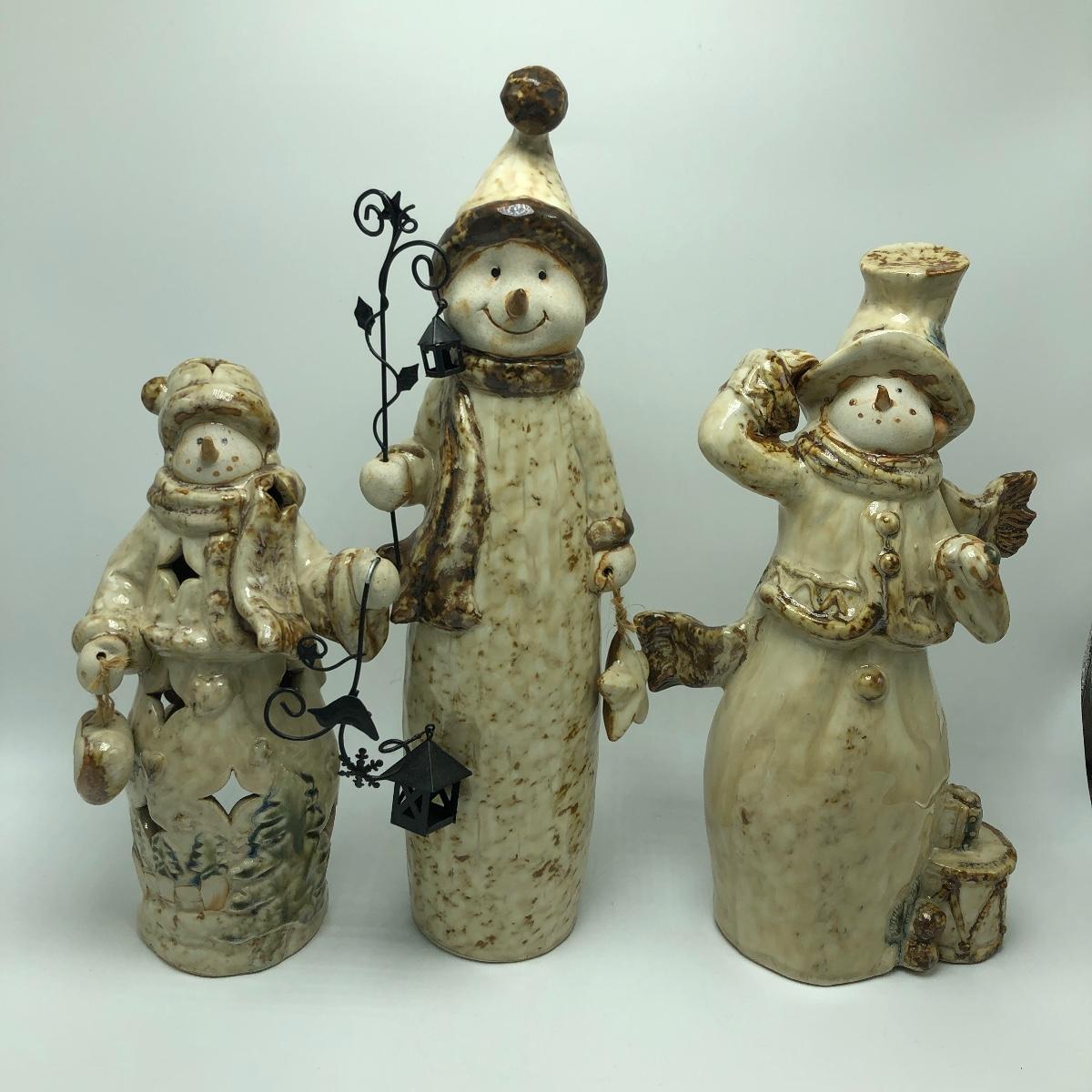 Lot includes a collection of five ceramic snowmen with three having a place for tea lights.