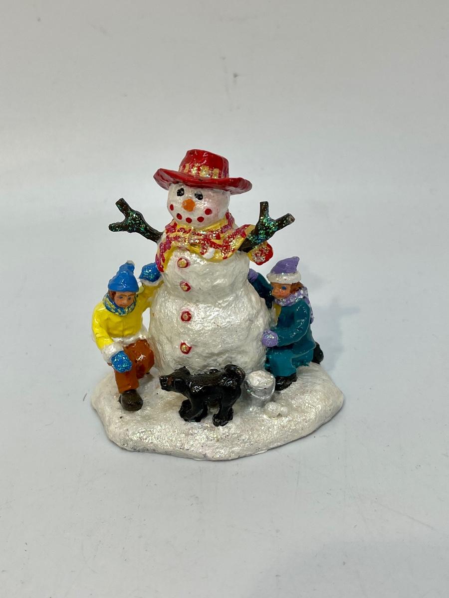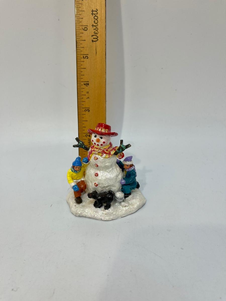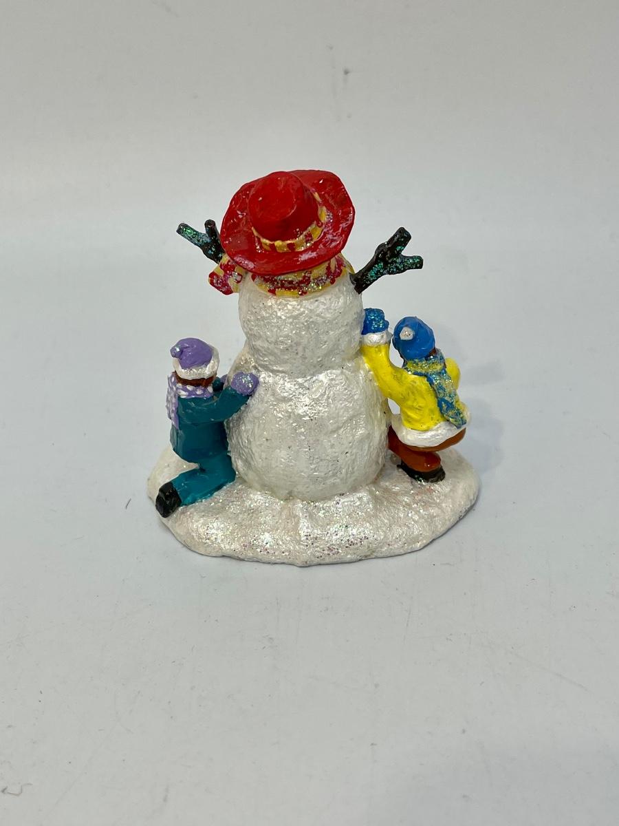 Children Building A Snowman Christmas Holiday Figurine. Small under 3".
