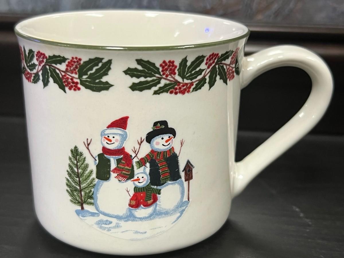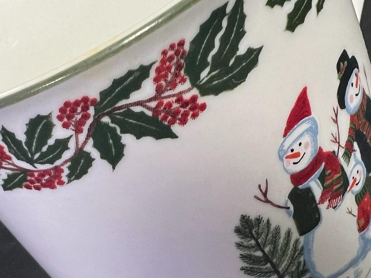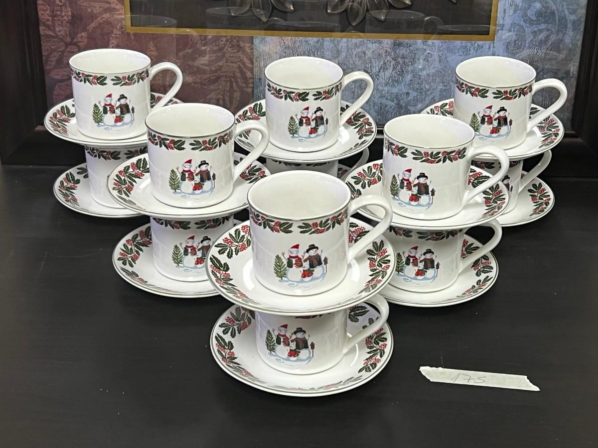 Snowman Family & Holly Christmas Holiday Cups and Saucers. GEI Design