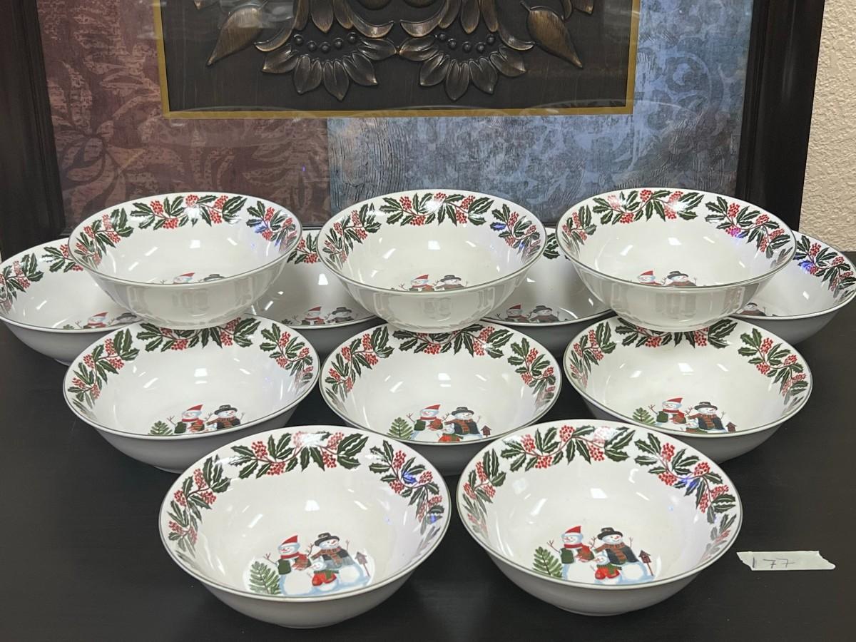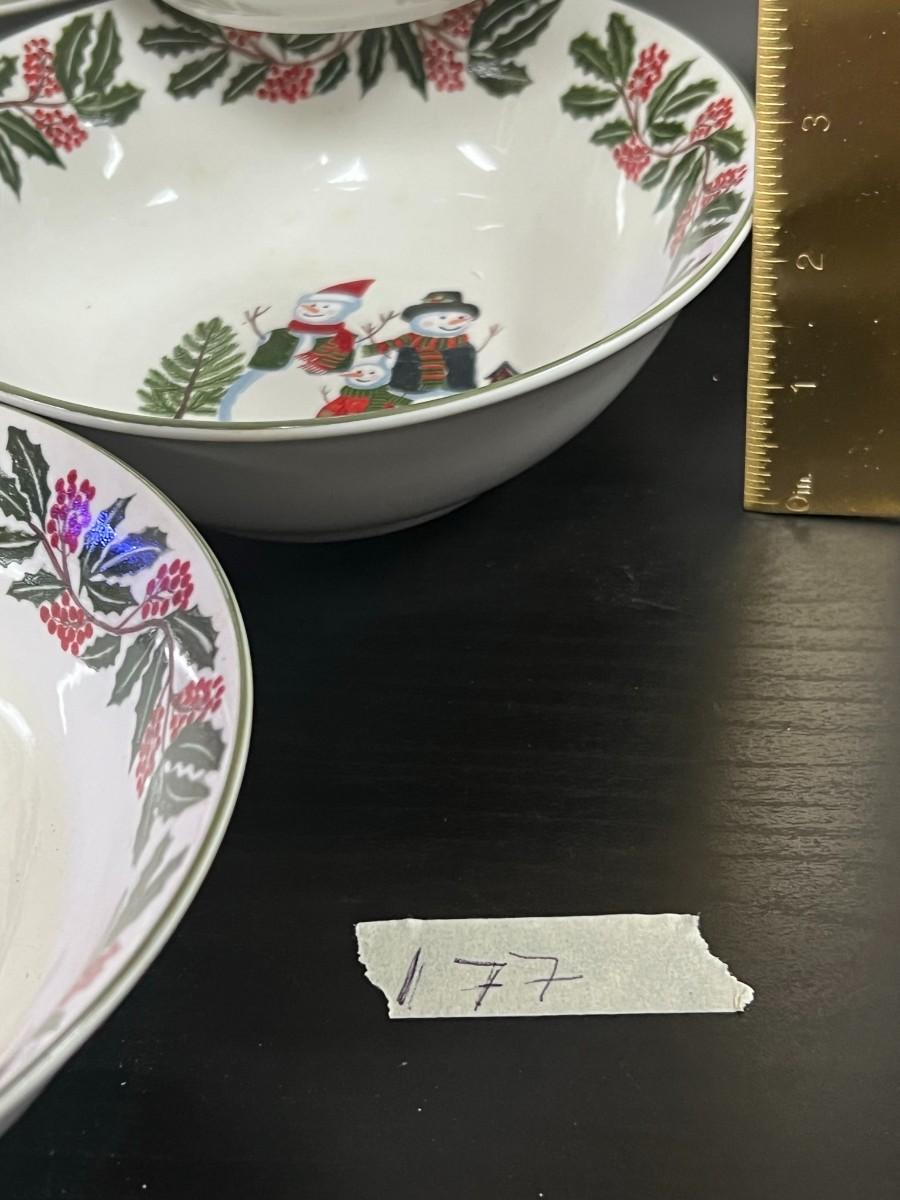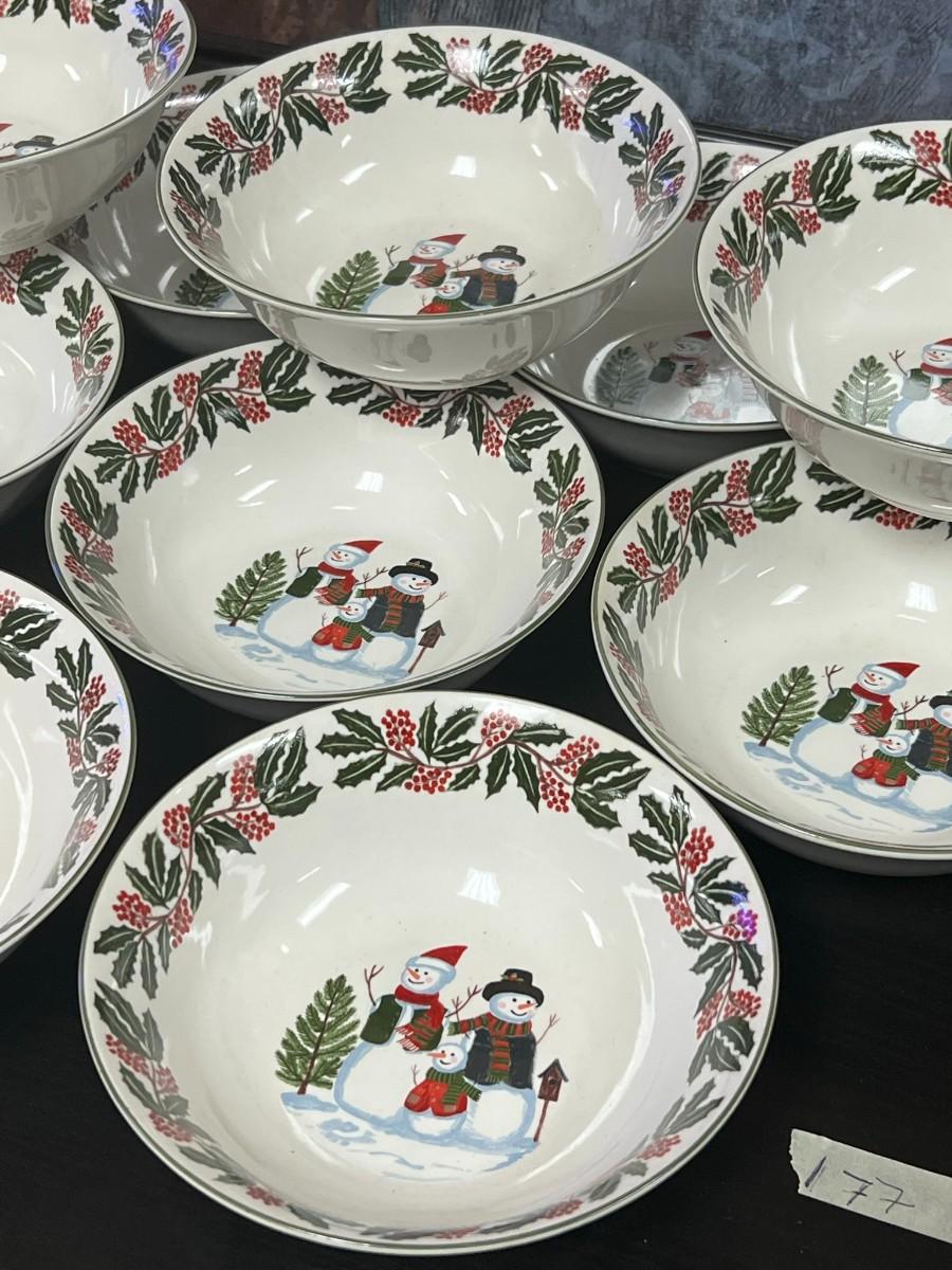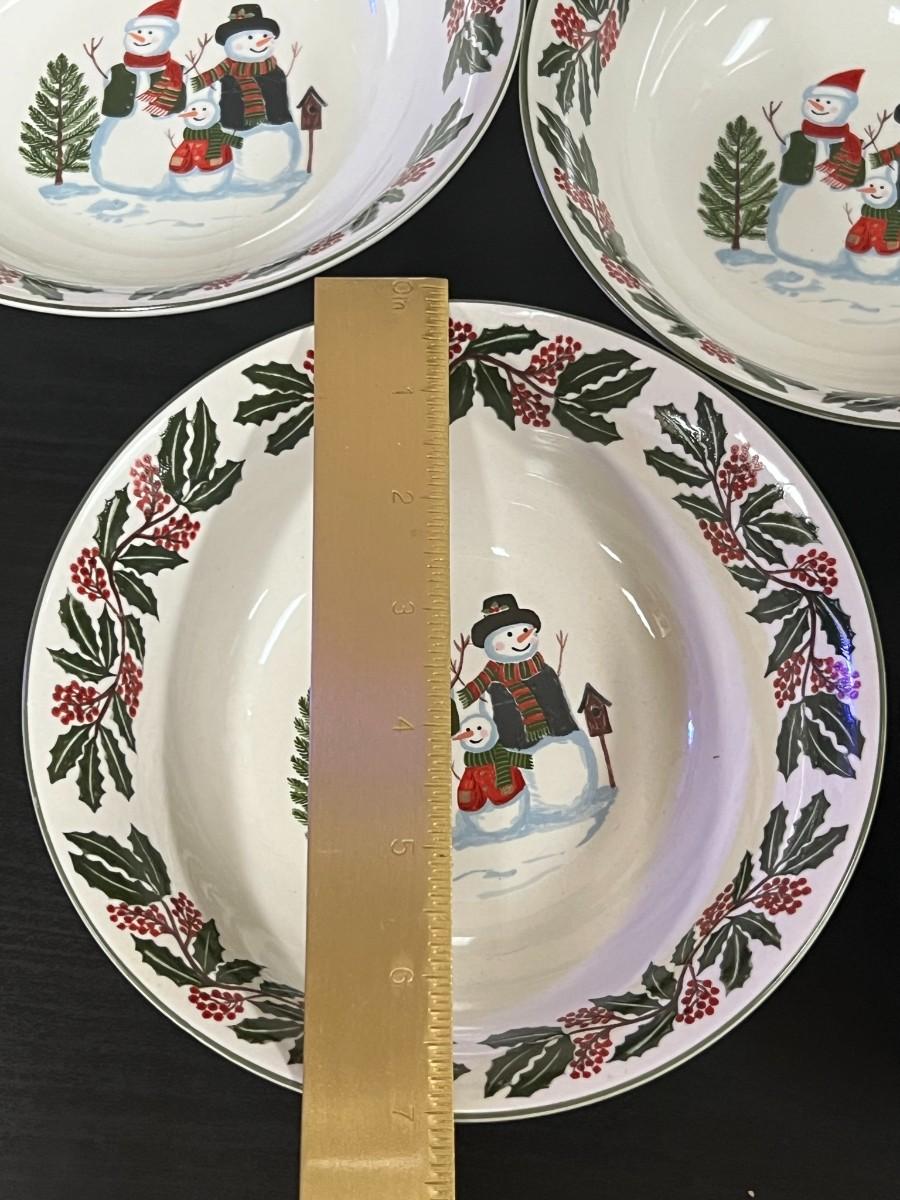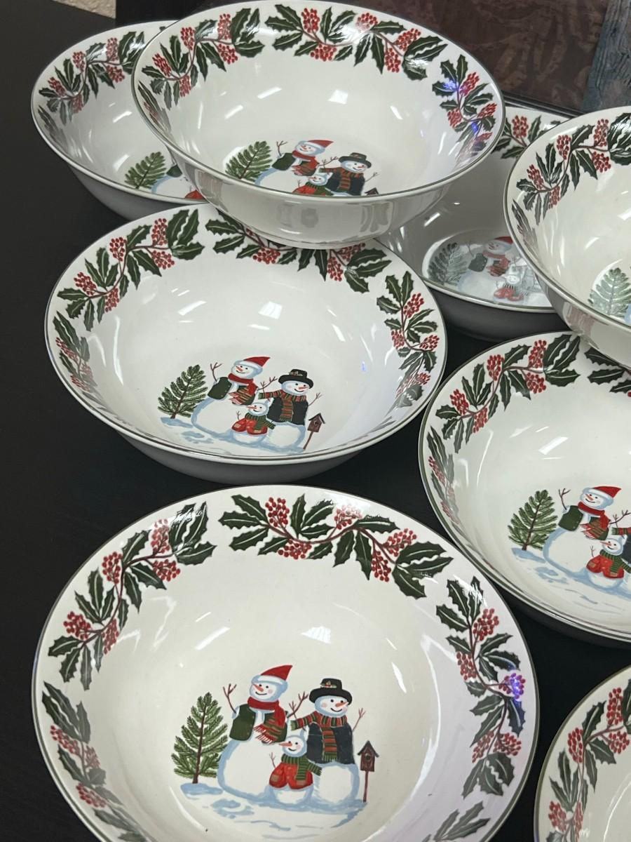 Snowman Family & Holly Christmas Holiday Bowls. GEI Design
