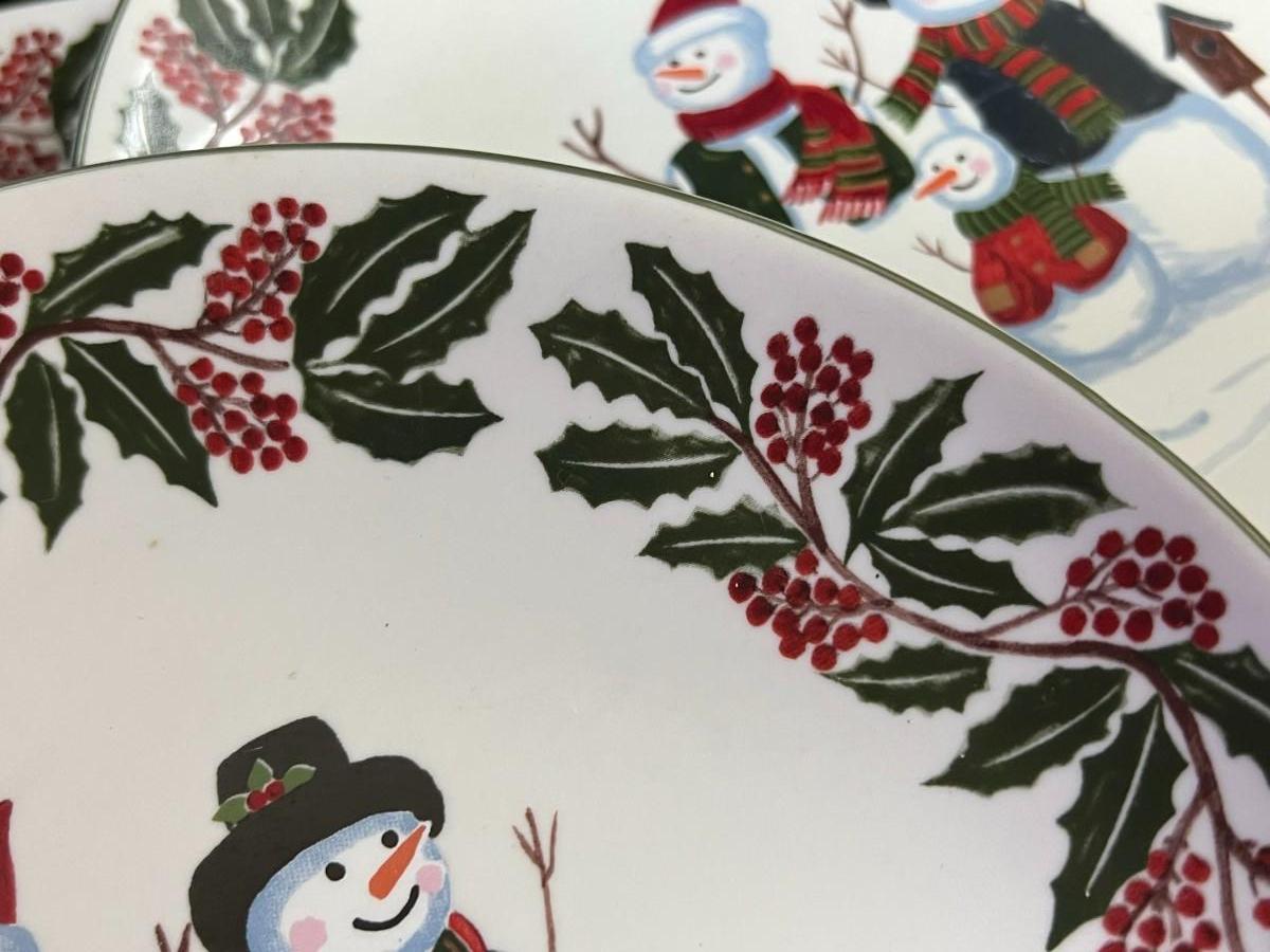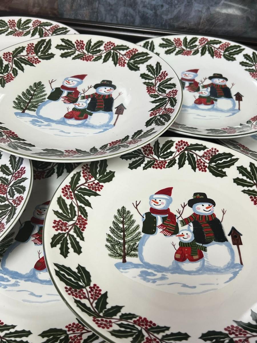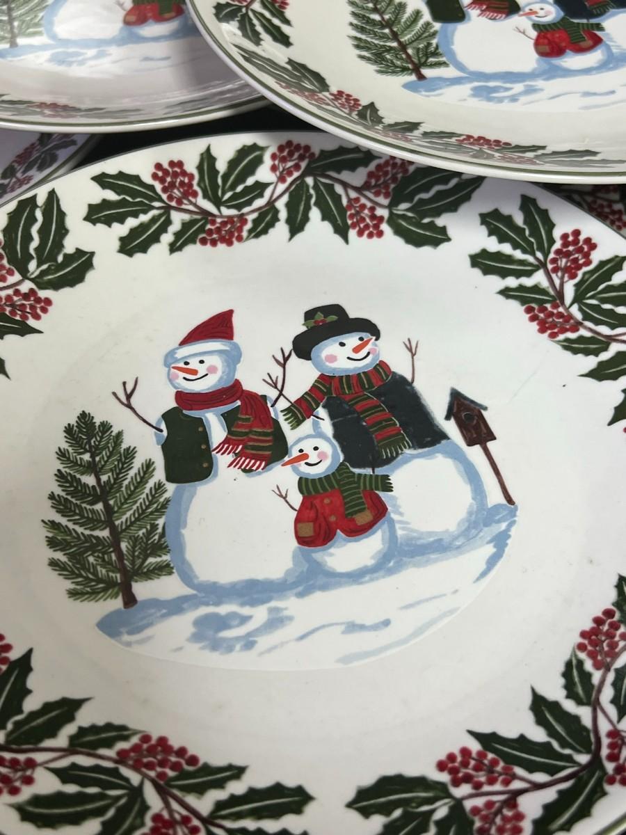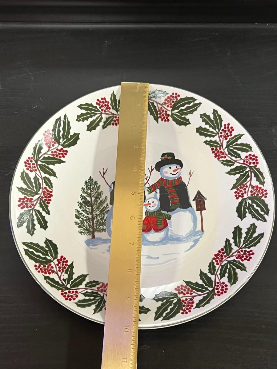 Snowman Family & Holly Christmas Holiday Plates. GEI Design