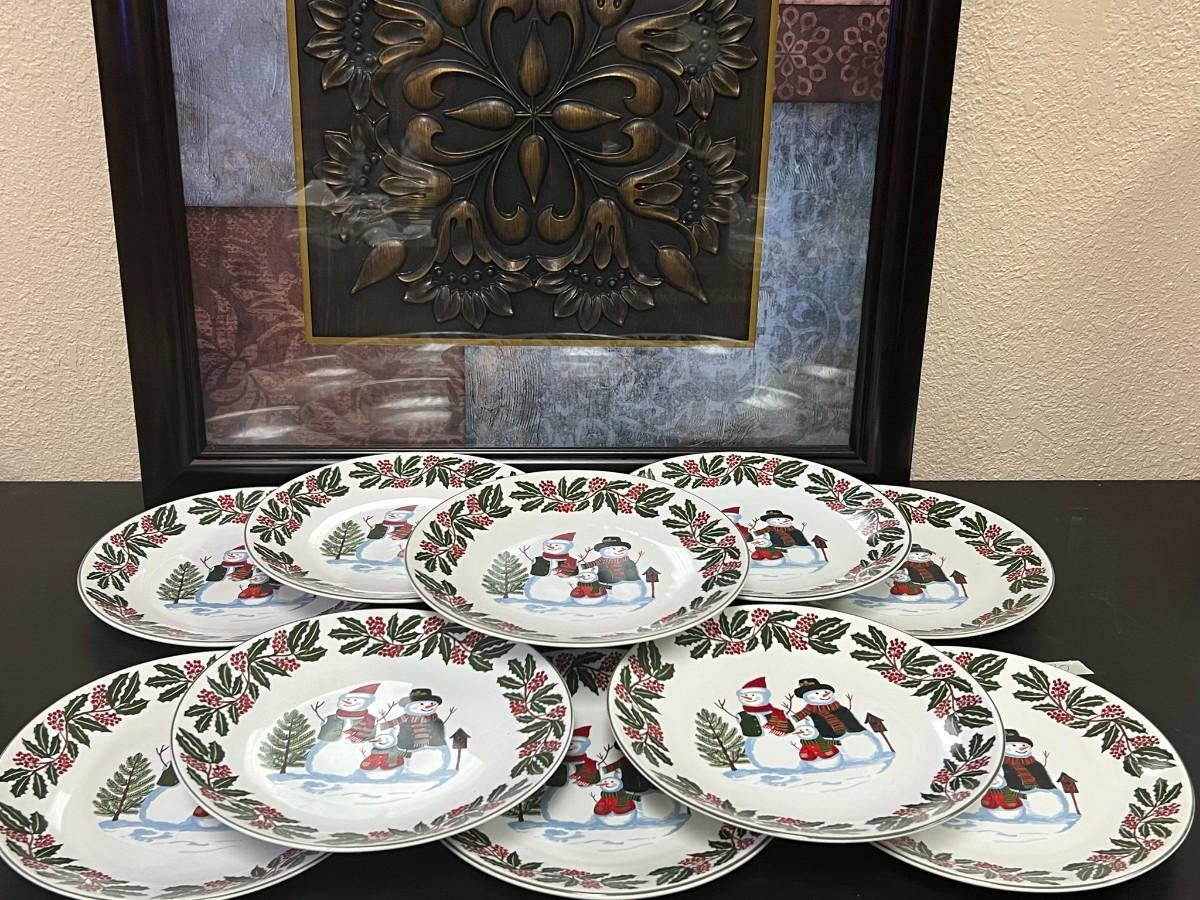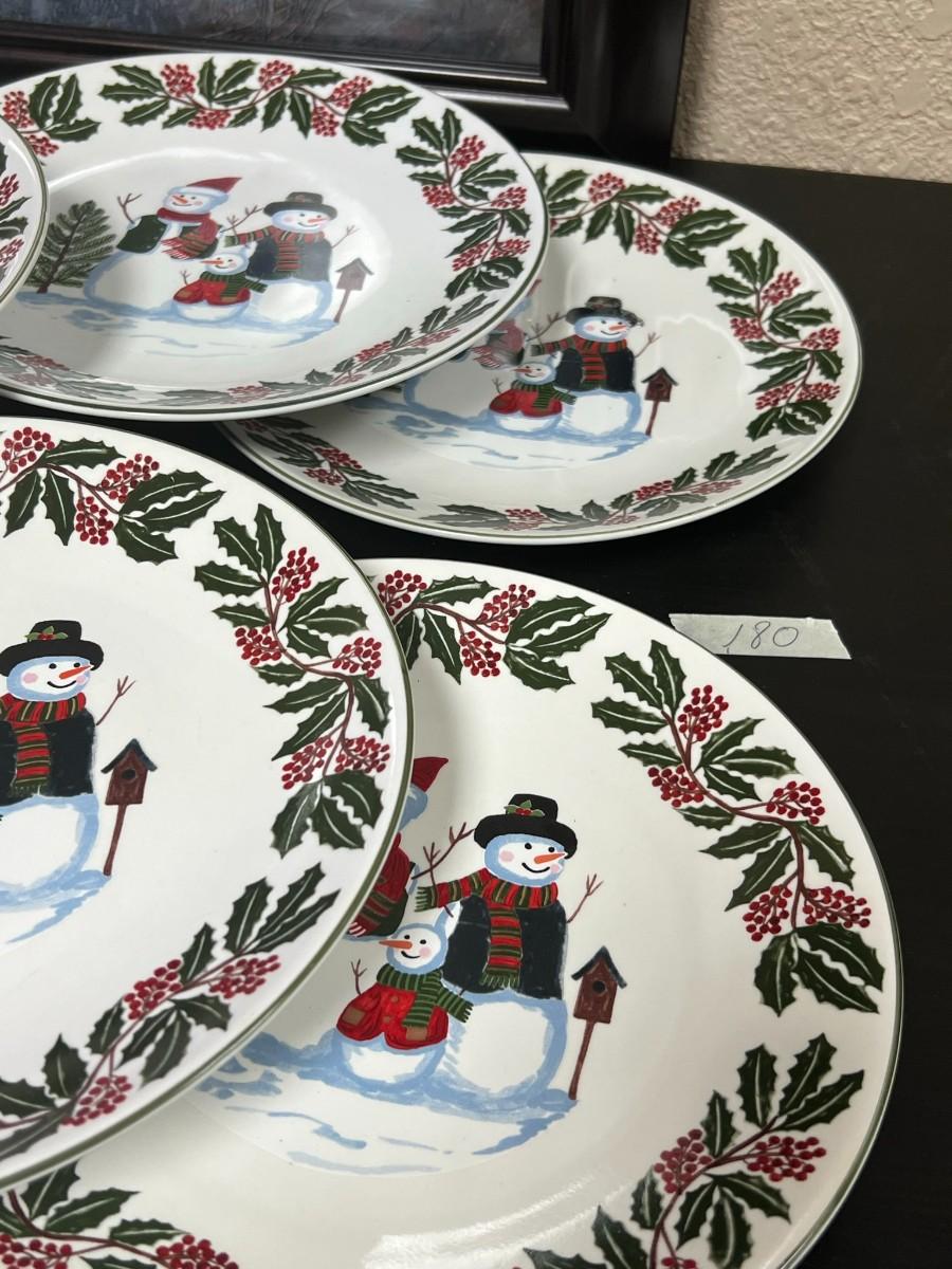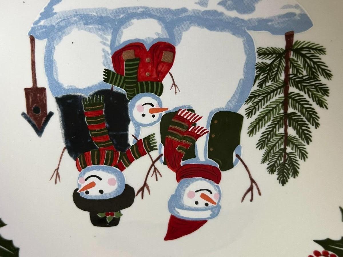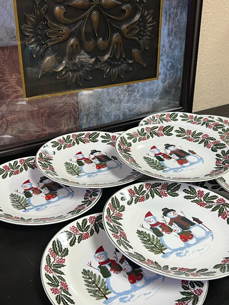 Snowman Family & Holly Christmas Holiday Plates. GEI Design